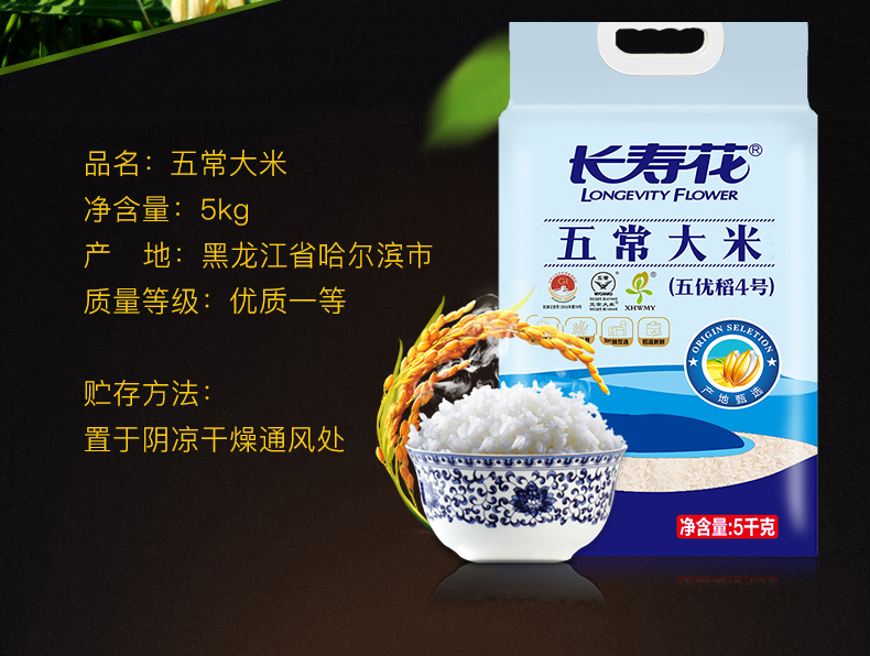 长寿花五常大米当季新粮大米稻香软粘 5kg*1袋