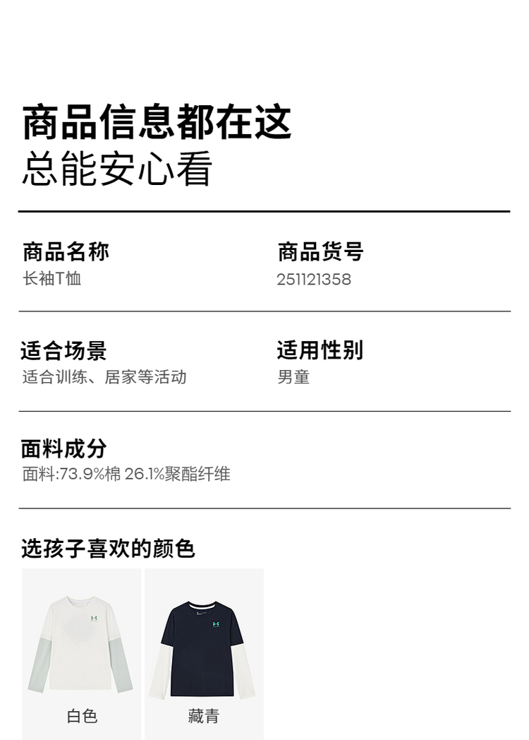 【长袖T恤】Under Armour安德玛儿童25新款吸湿排汗速干凉感圆领长袖T恤 251121358【安德玛专场】