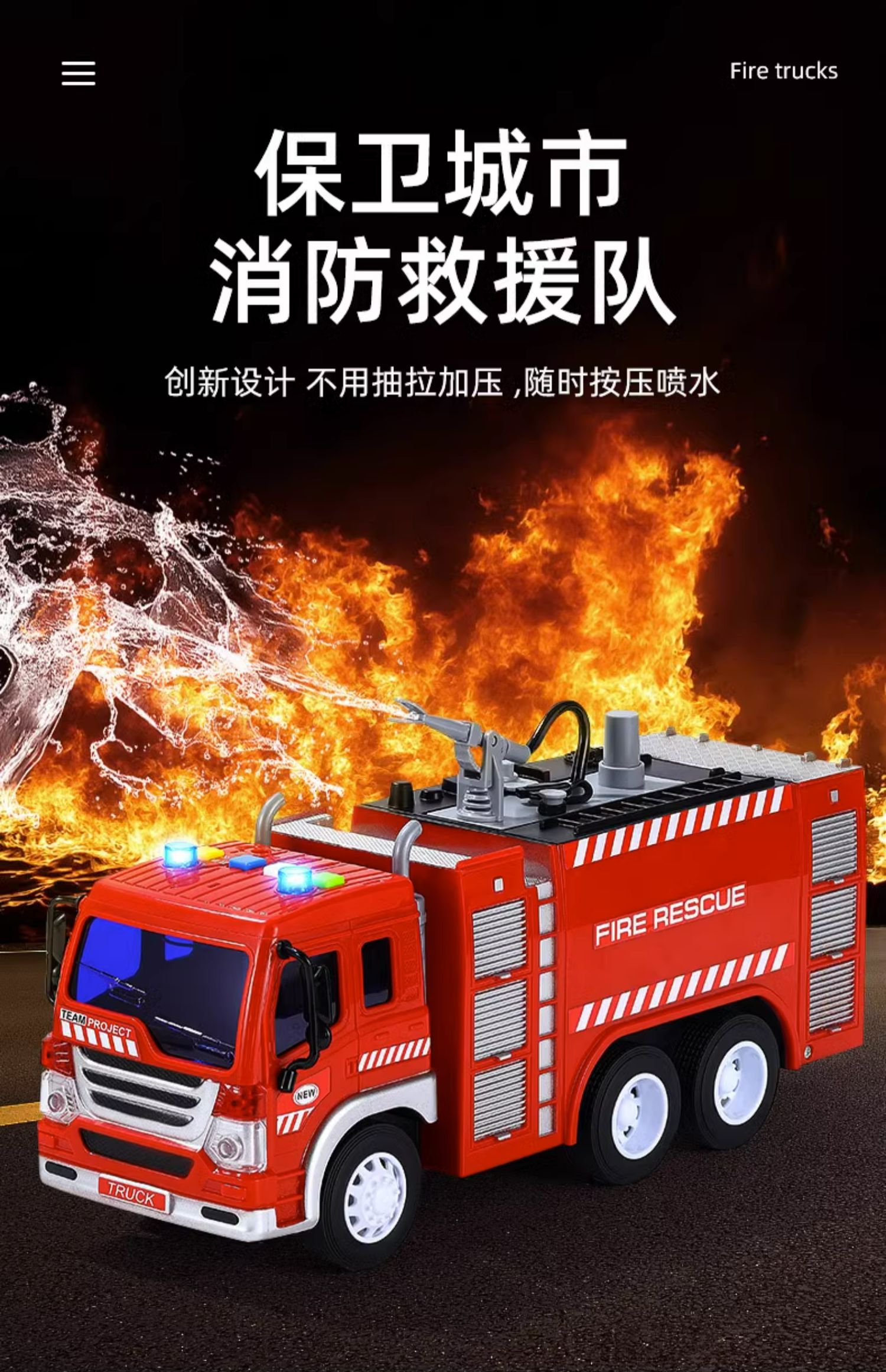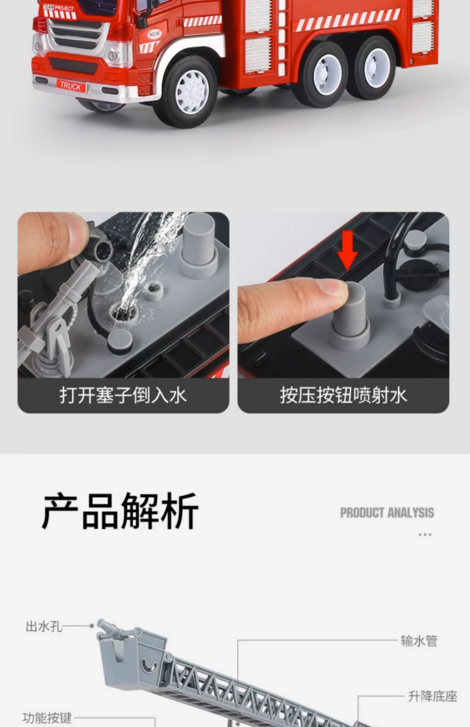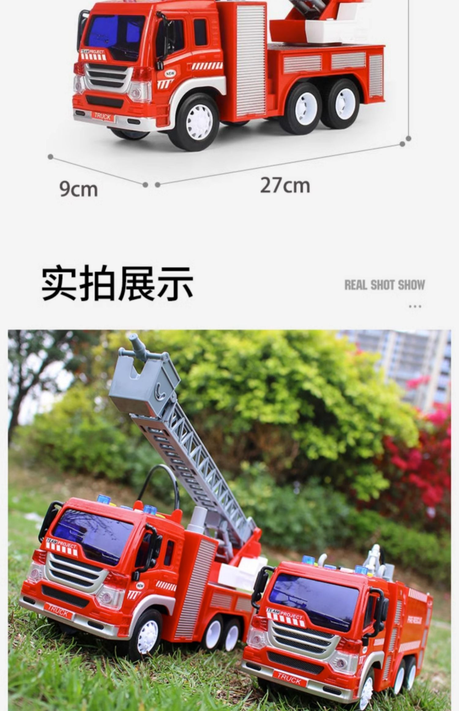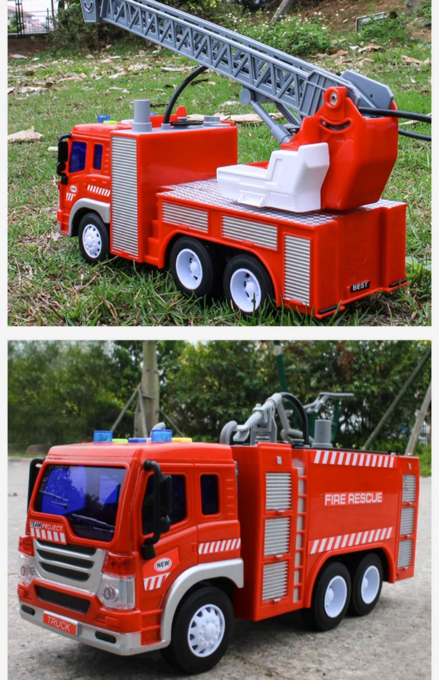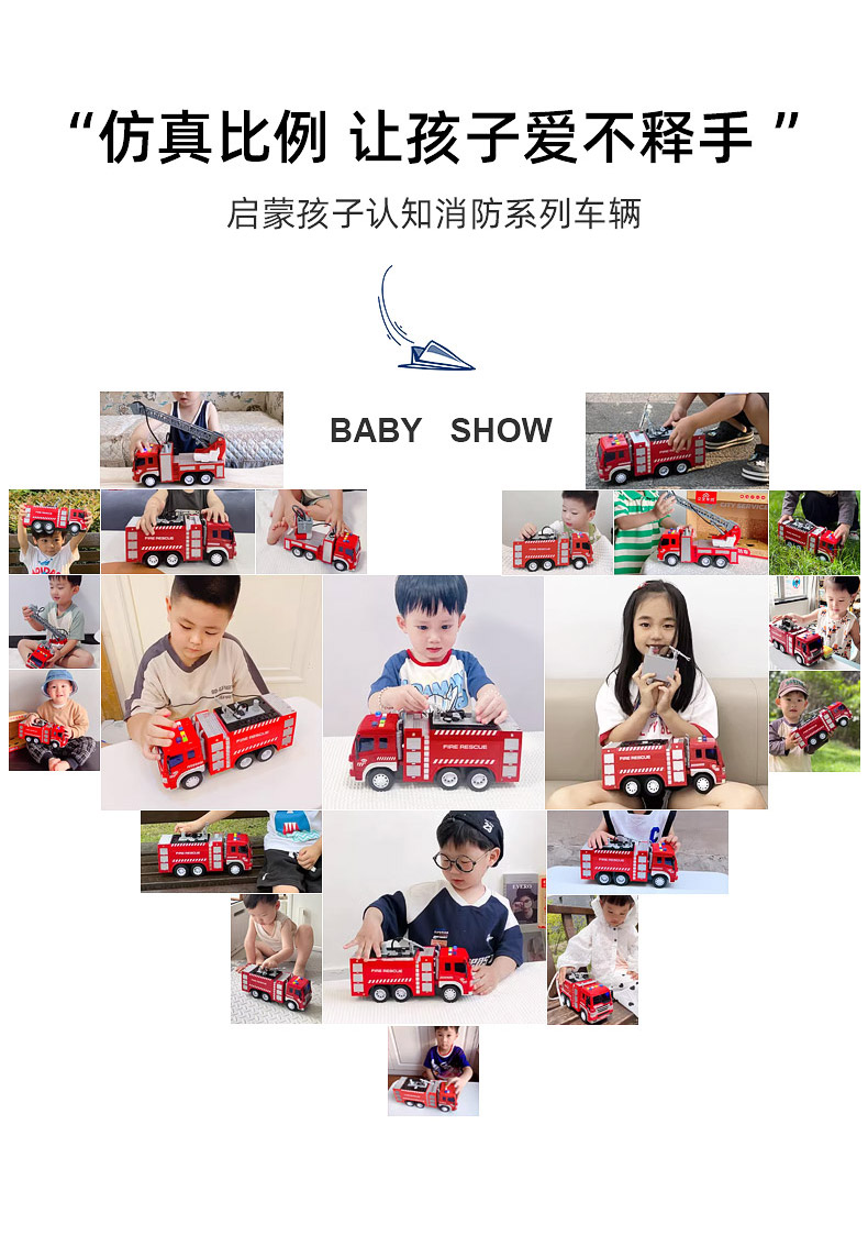 【文艺】文艺1:20会喷水能讲语言的消防车儿童大号消防车玩具可喷水早教故事机男孩唱歌惯性云梯车