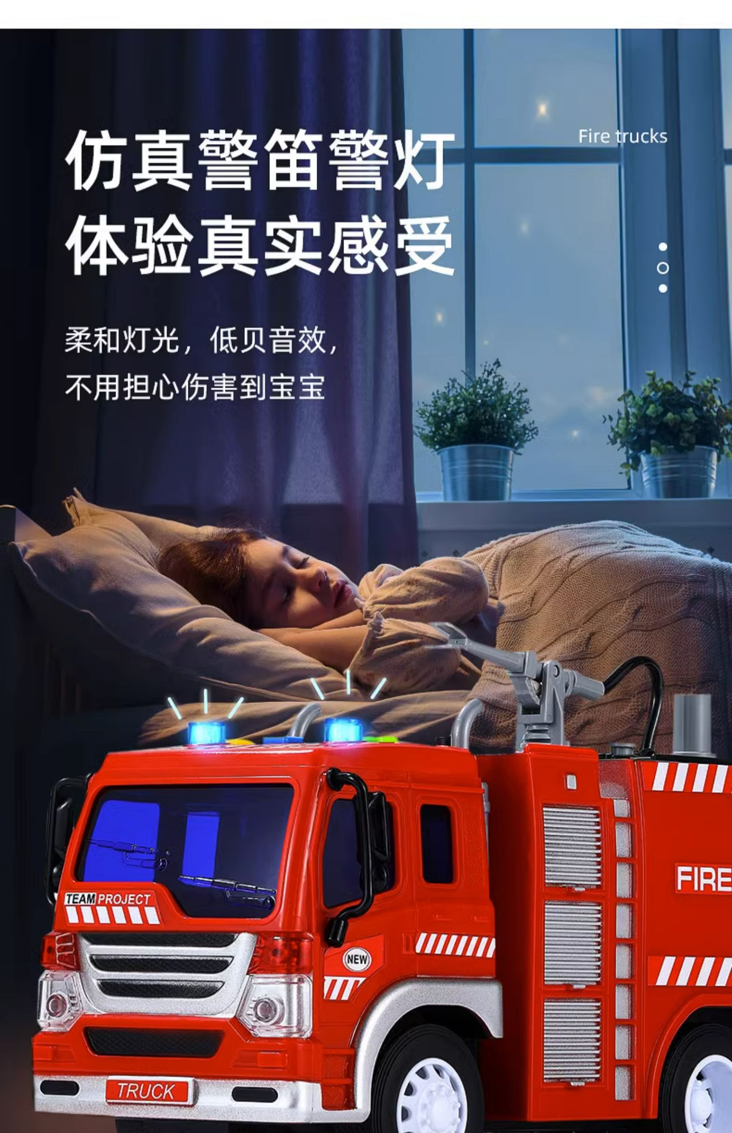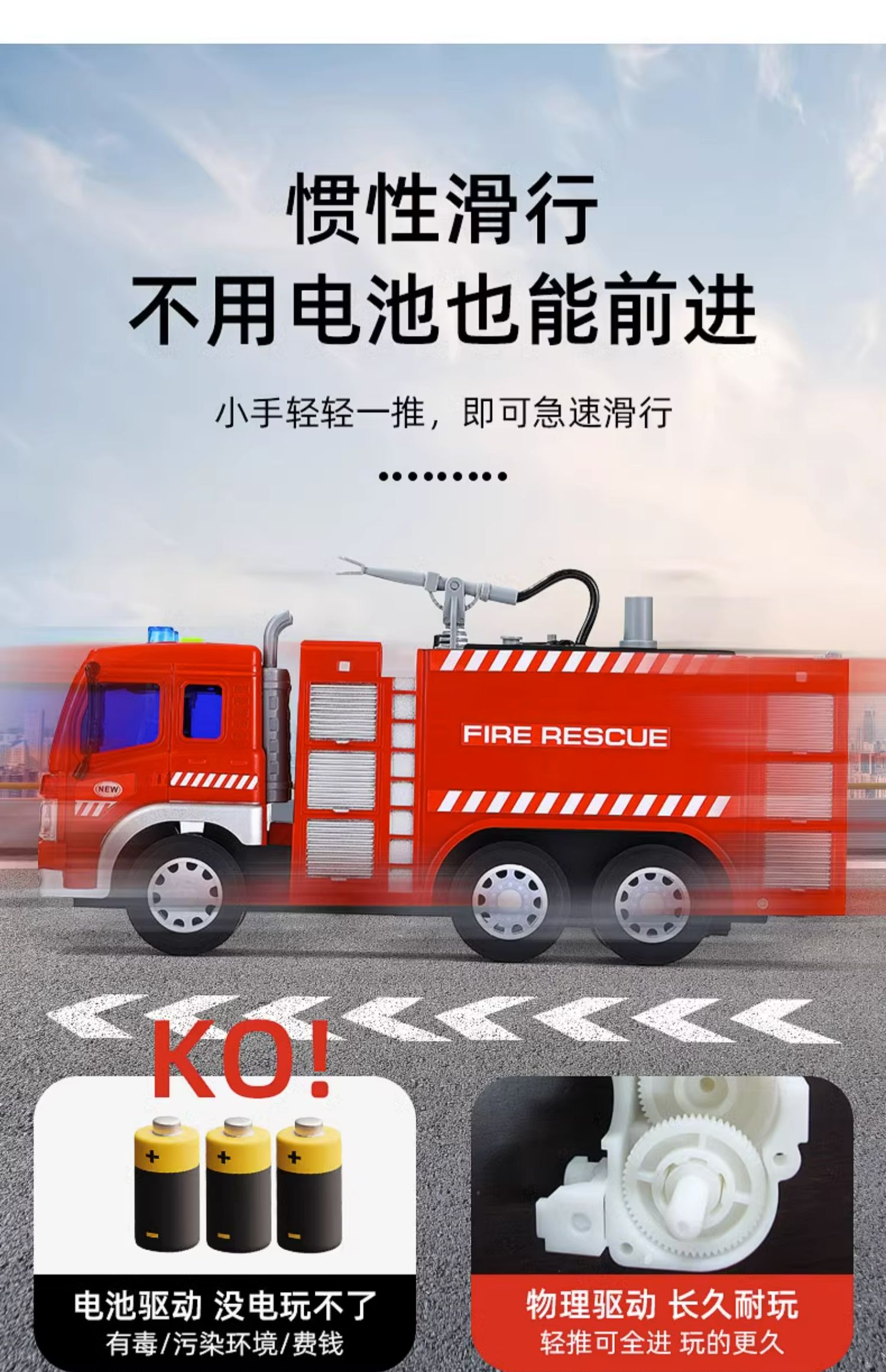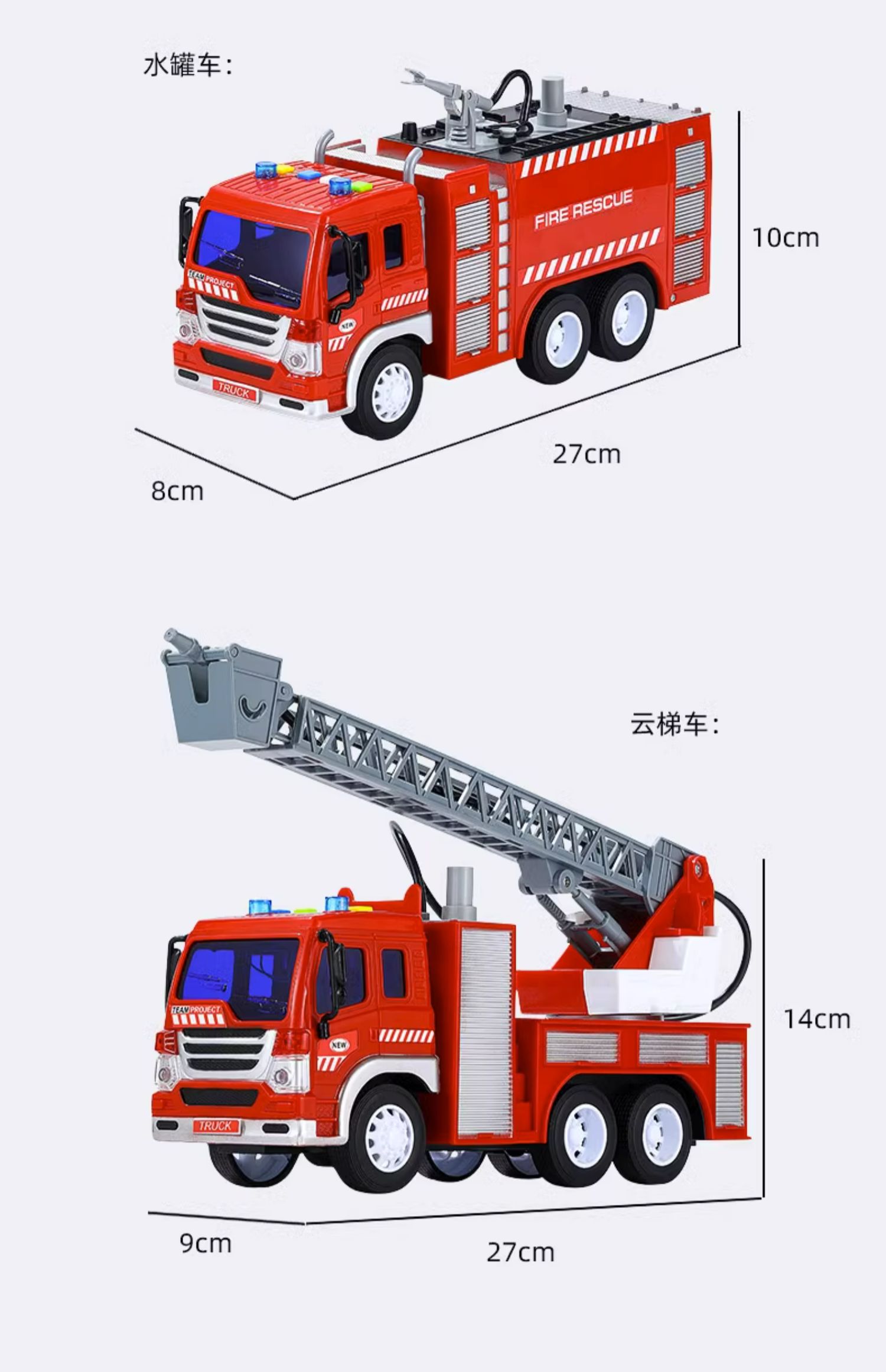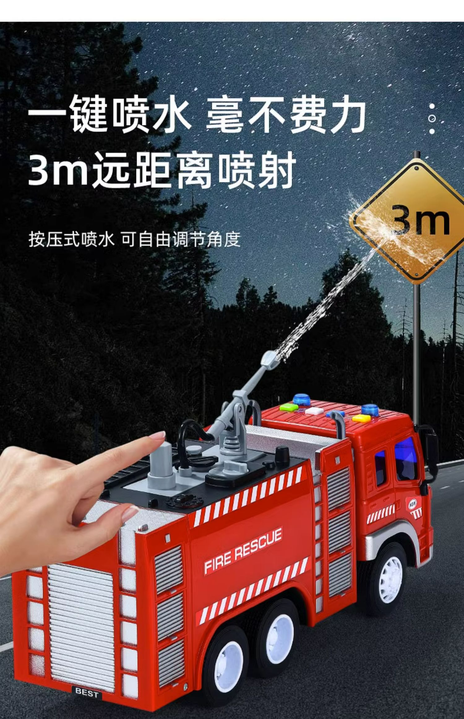 【文艺】文艺1:20会喷水能讲语言的消防车儿童大号消防车玩具可喷水早教故事机男孩唱歌惯性云梯车