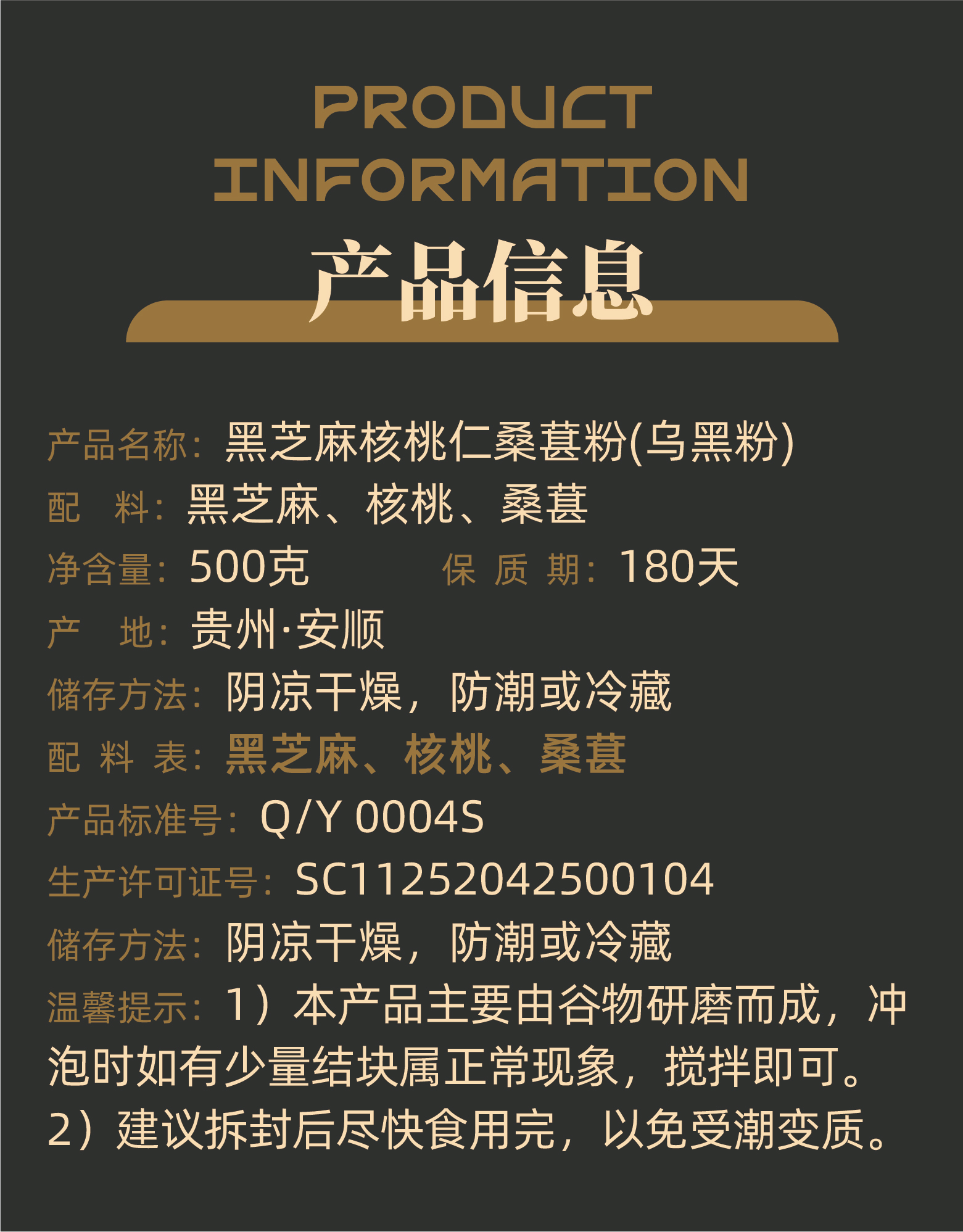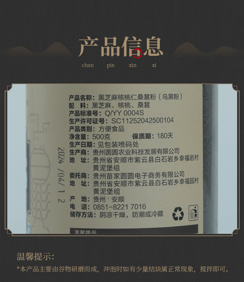 【乌黑粉】核桃仁黑芝麻桑葚粉 500g 苗家圆圆