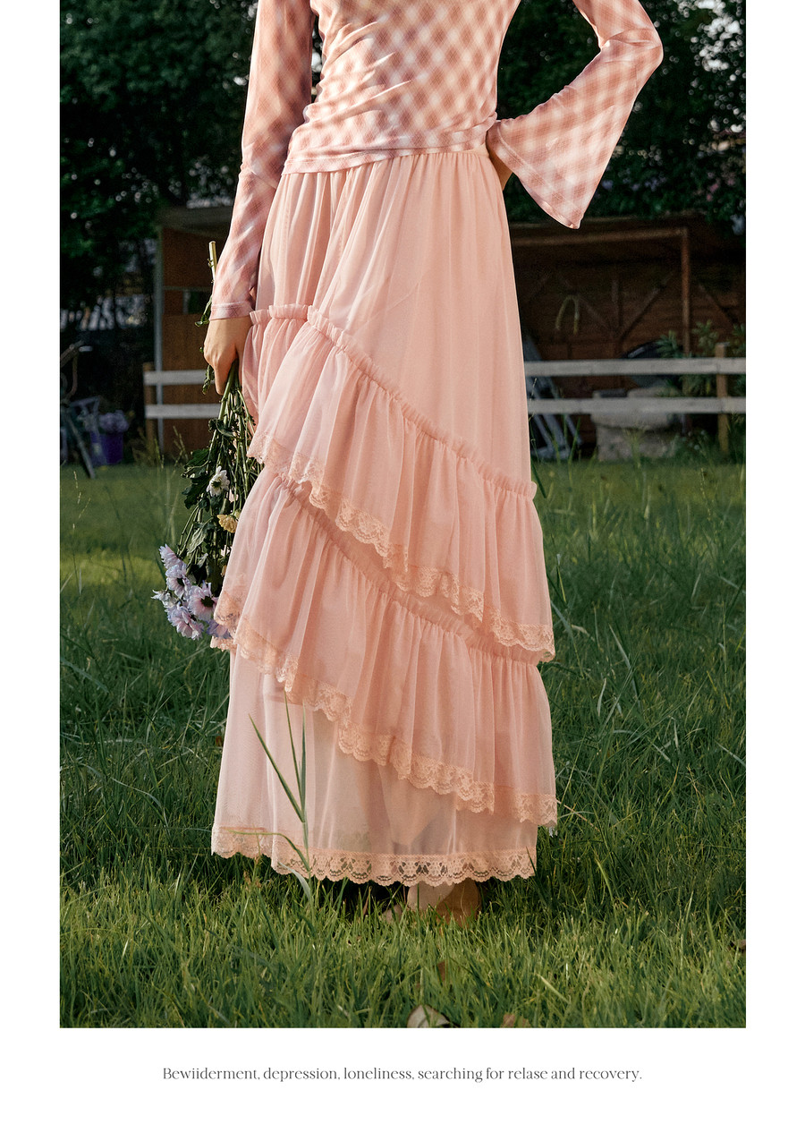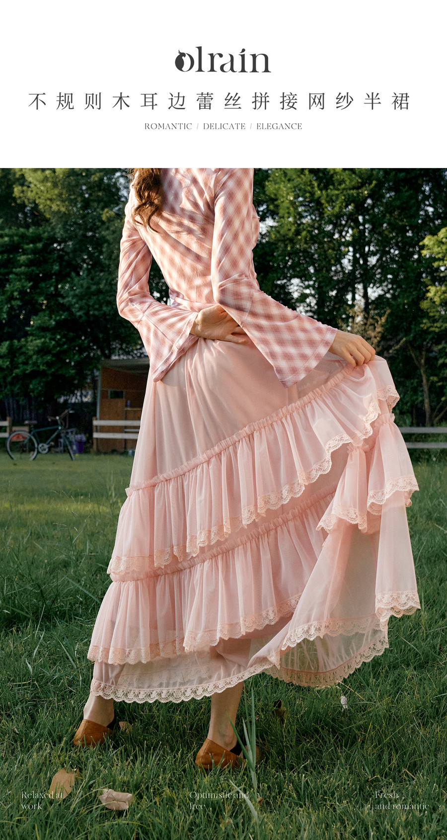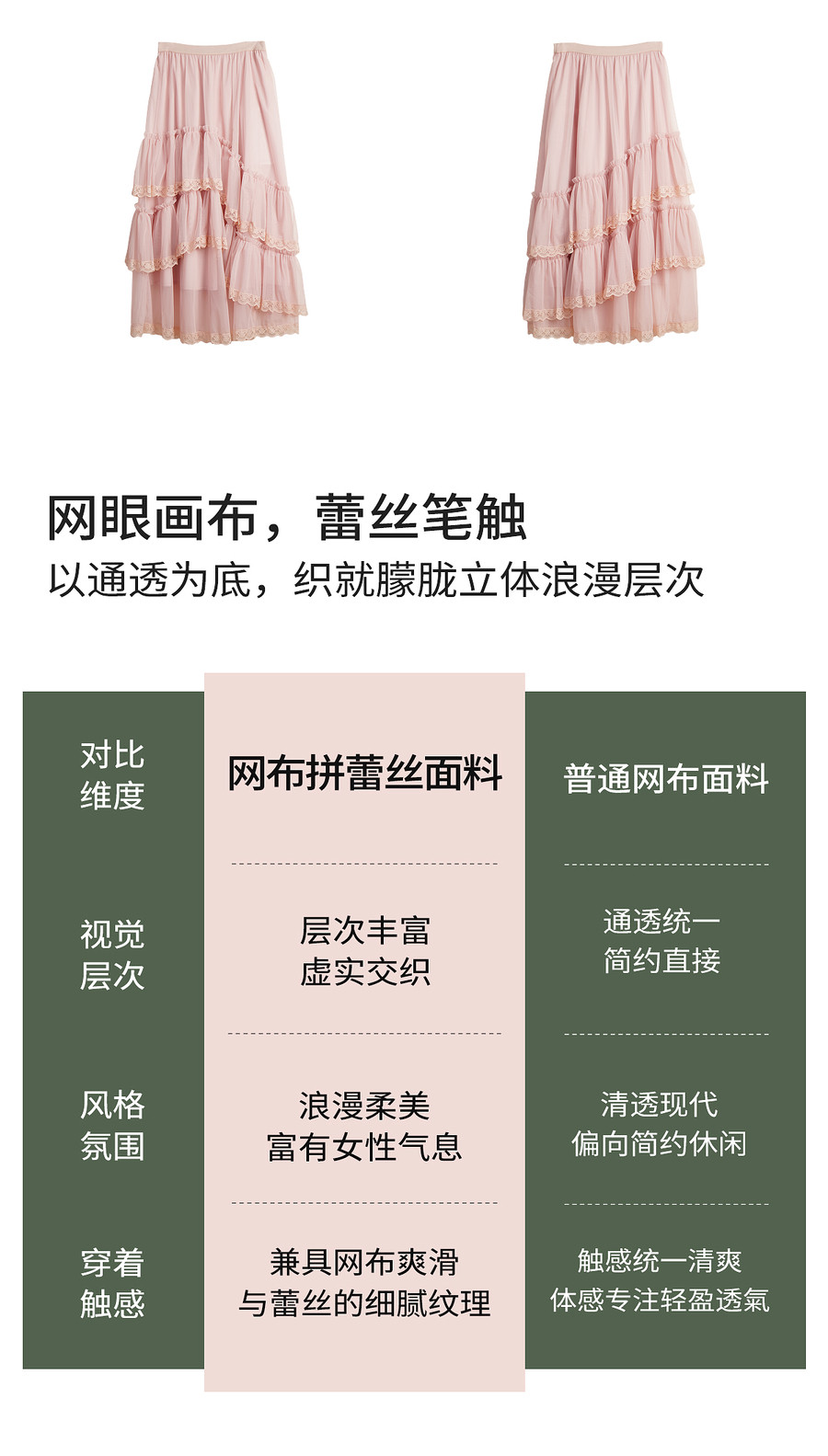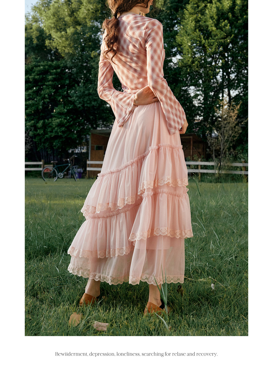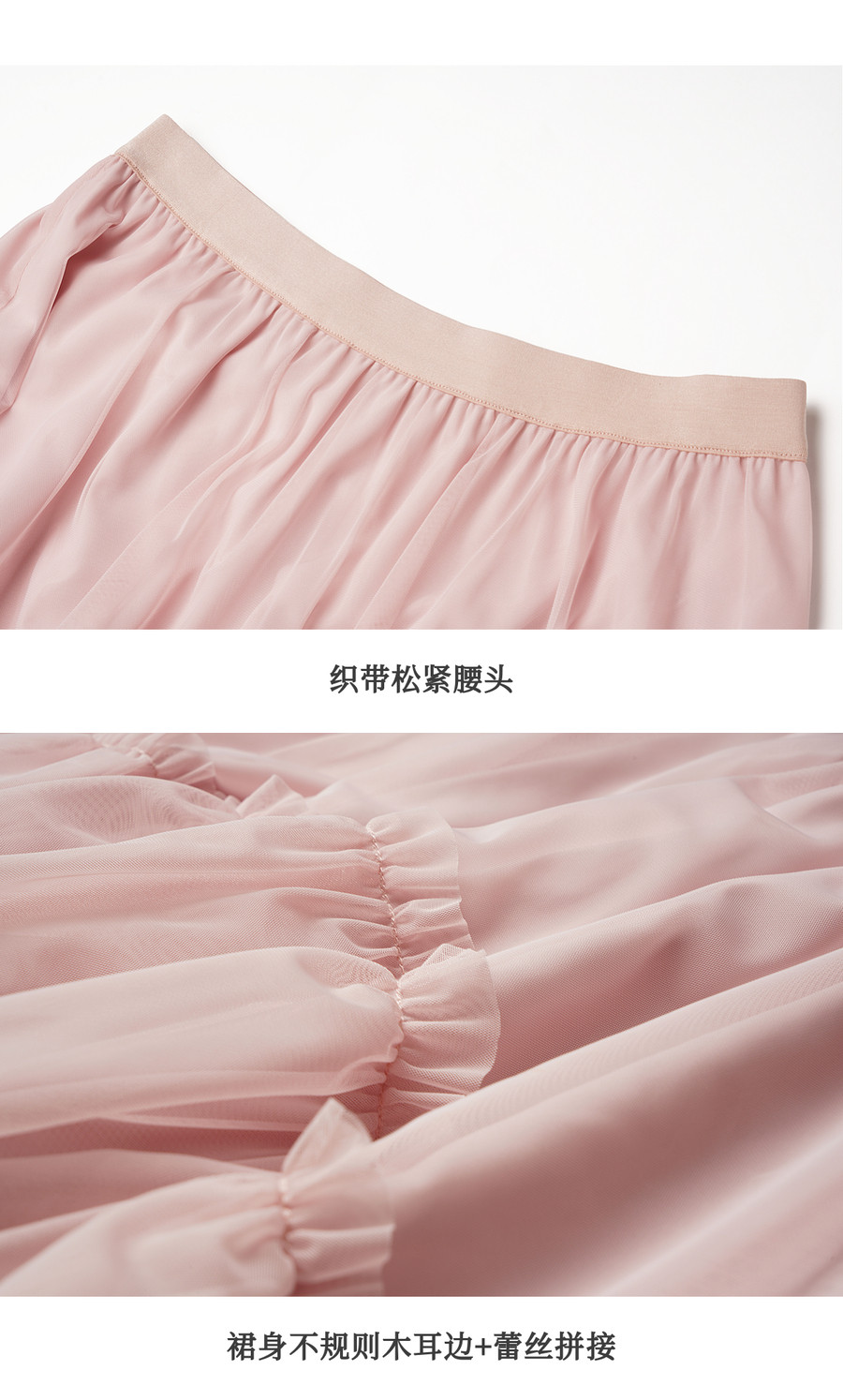 法式优雅不规则木耳边蕾丝拼接网纱半裙女春季新款显瘦气质a字裙