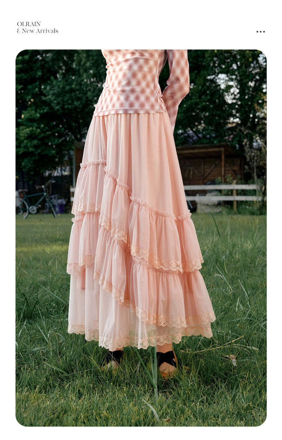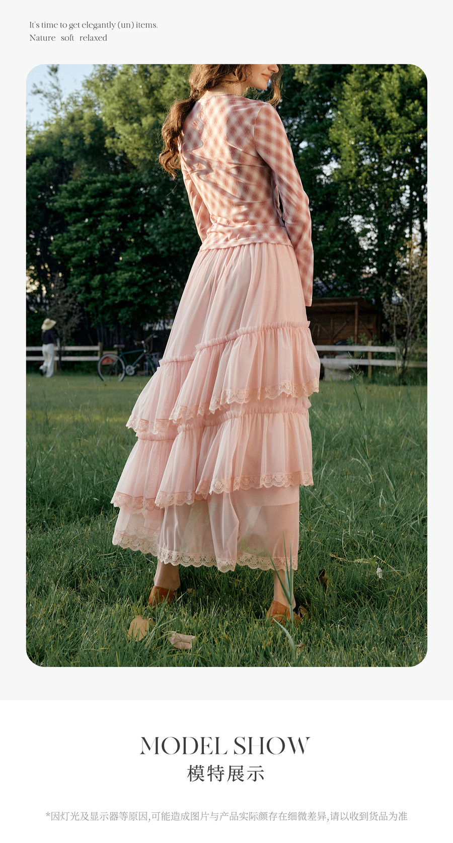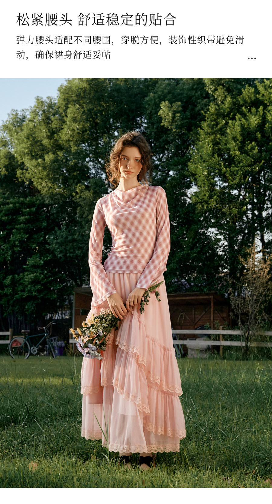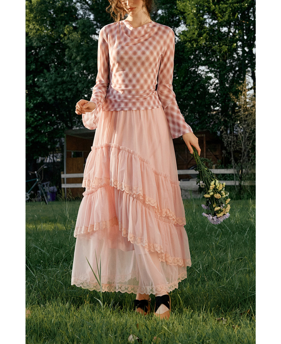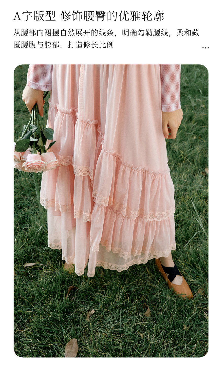 法式优雅不规则木耳边蕾丝拼接网纱半裙女春季新款显瘦气质a字裙