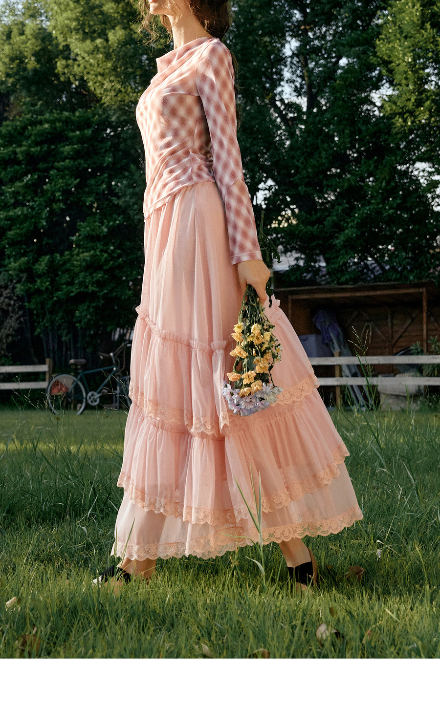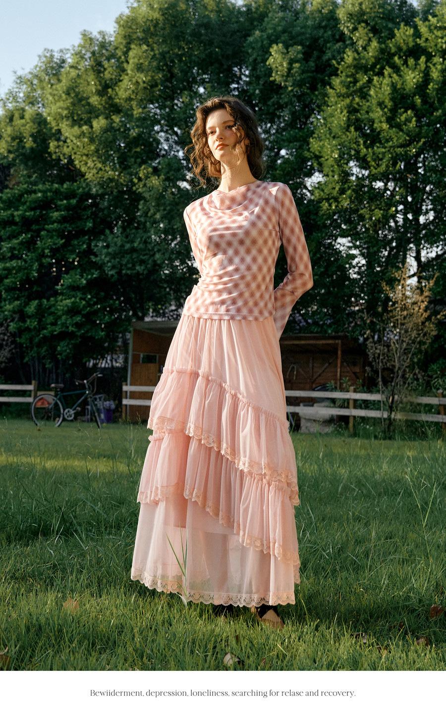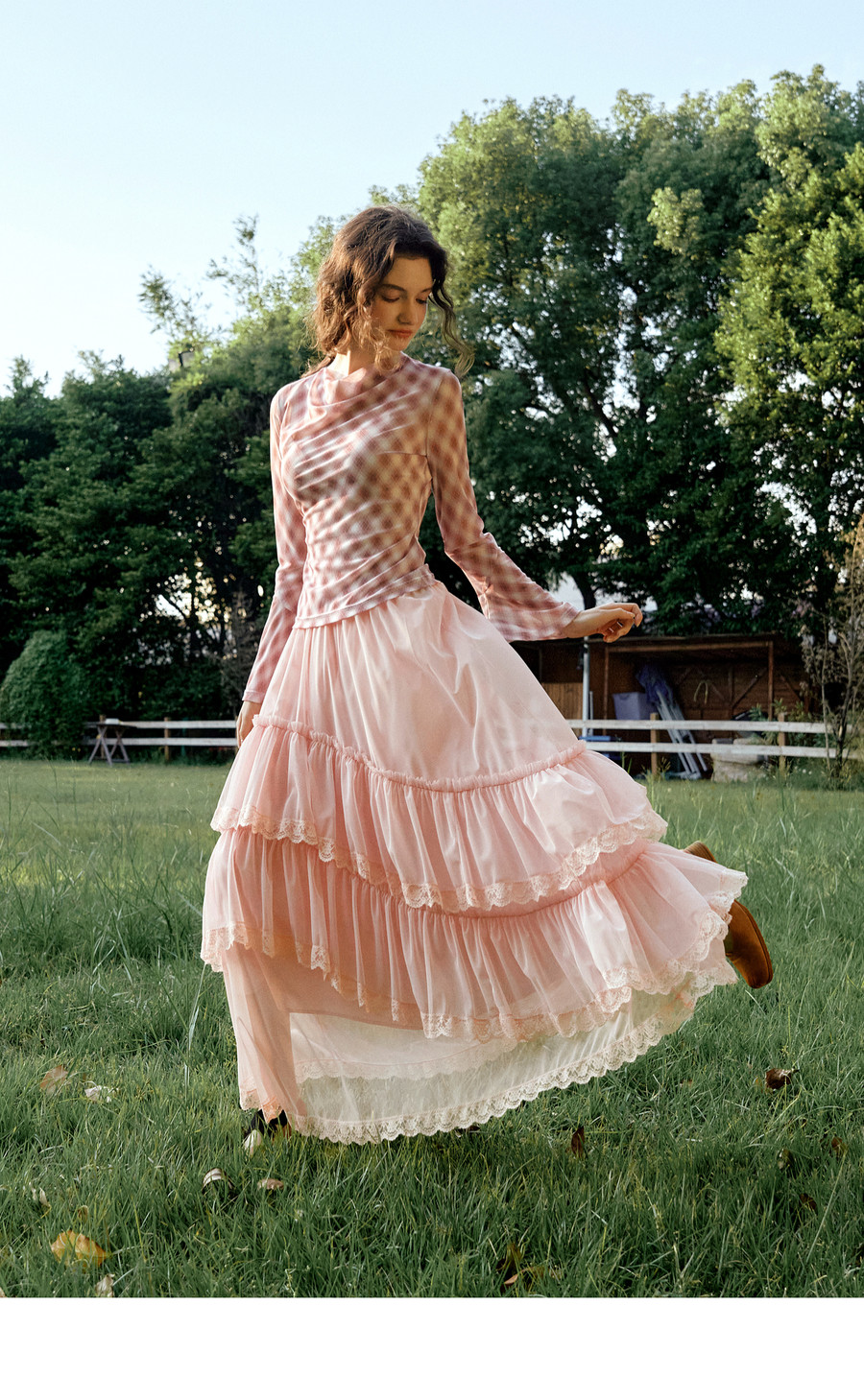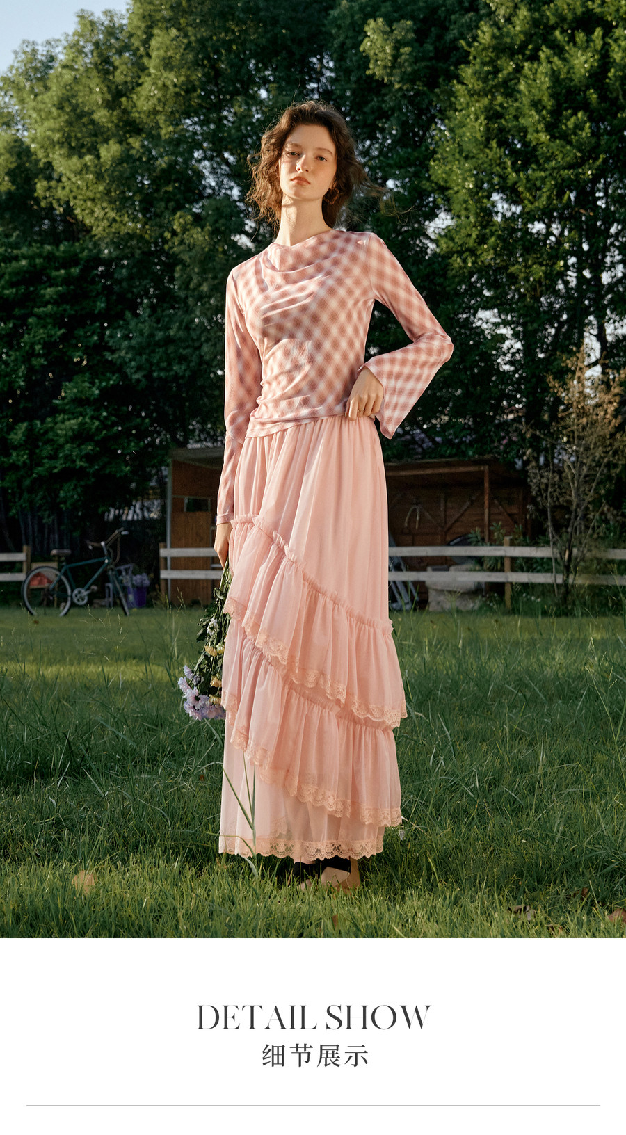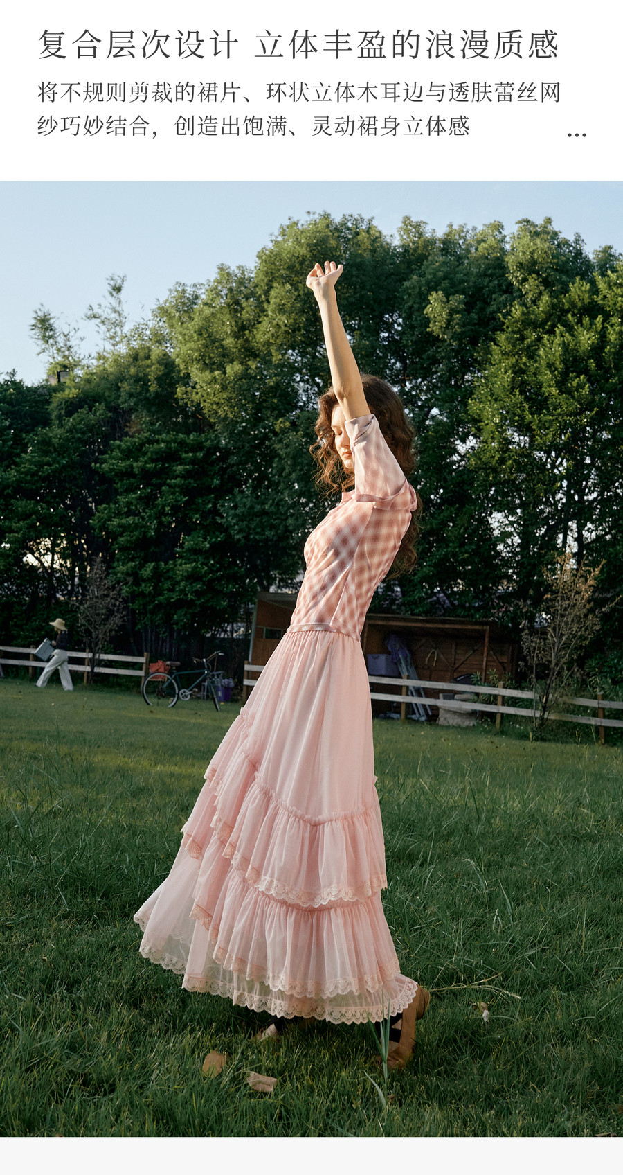 法式优雅不规则木耳边蕾丝拼接网纱半裙女春季新款显瘦气质a字裙