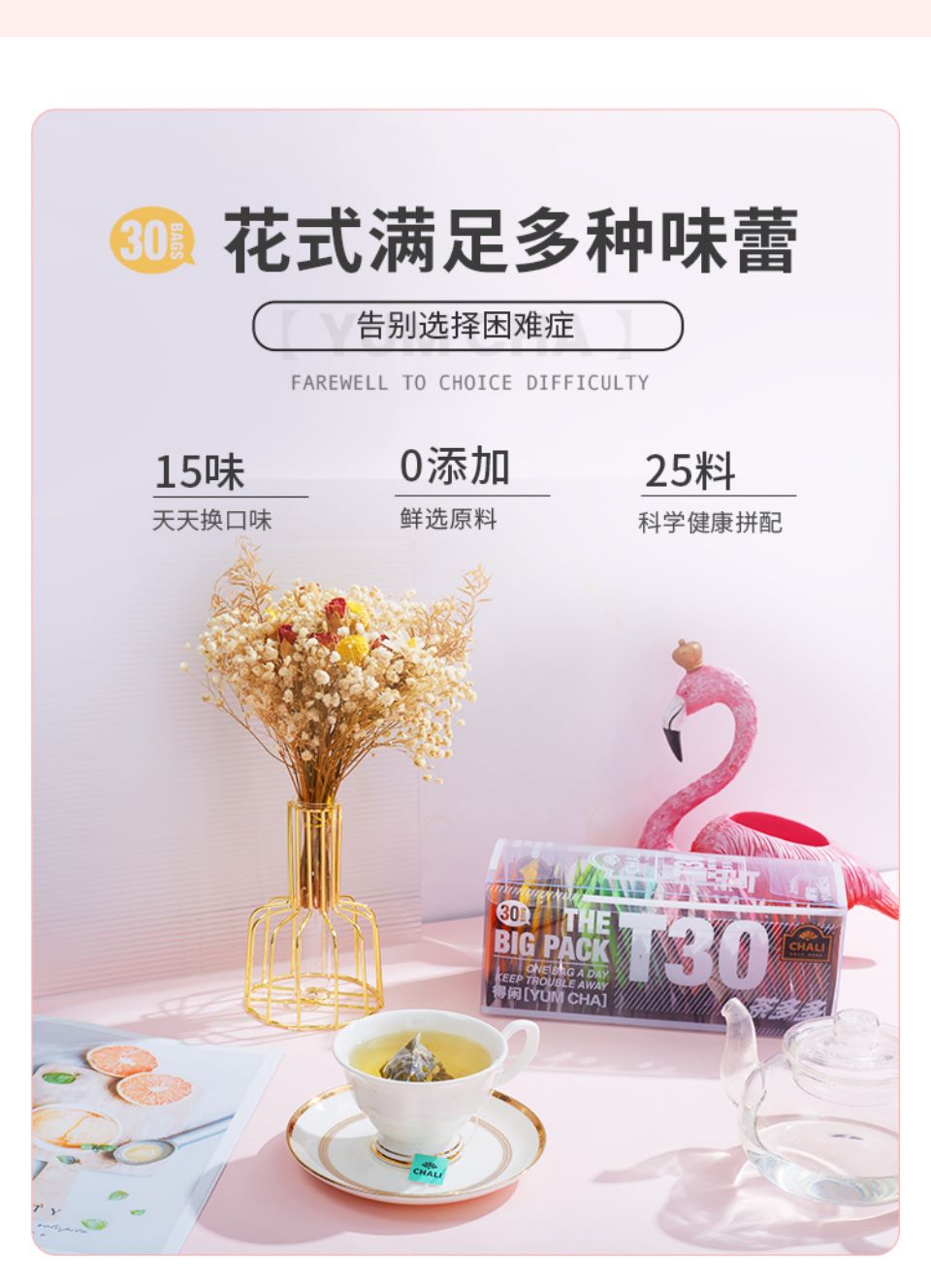 此外,平台同步上线了红豆薏米、红枣桂圆等养生系列袋泡茶,喜欢尝鲜的小伙伴不妨试试“T15缤纷组合茶”“T30茶多多”“礼享东方”三款组合装。