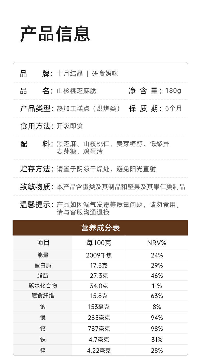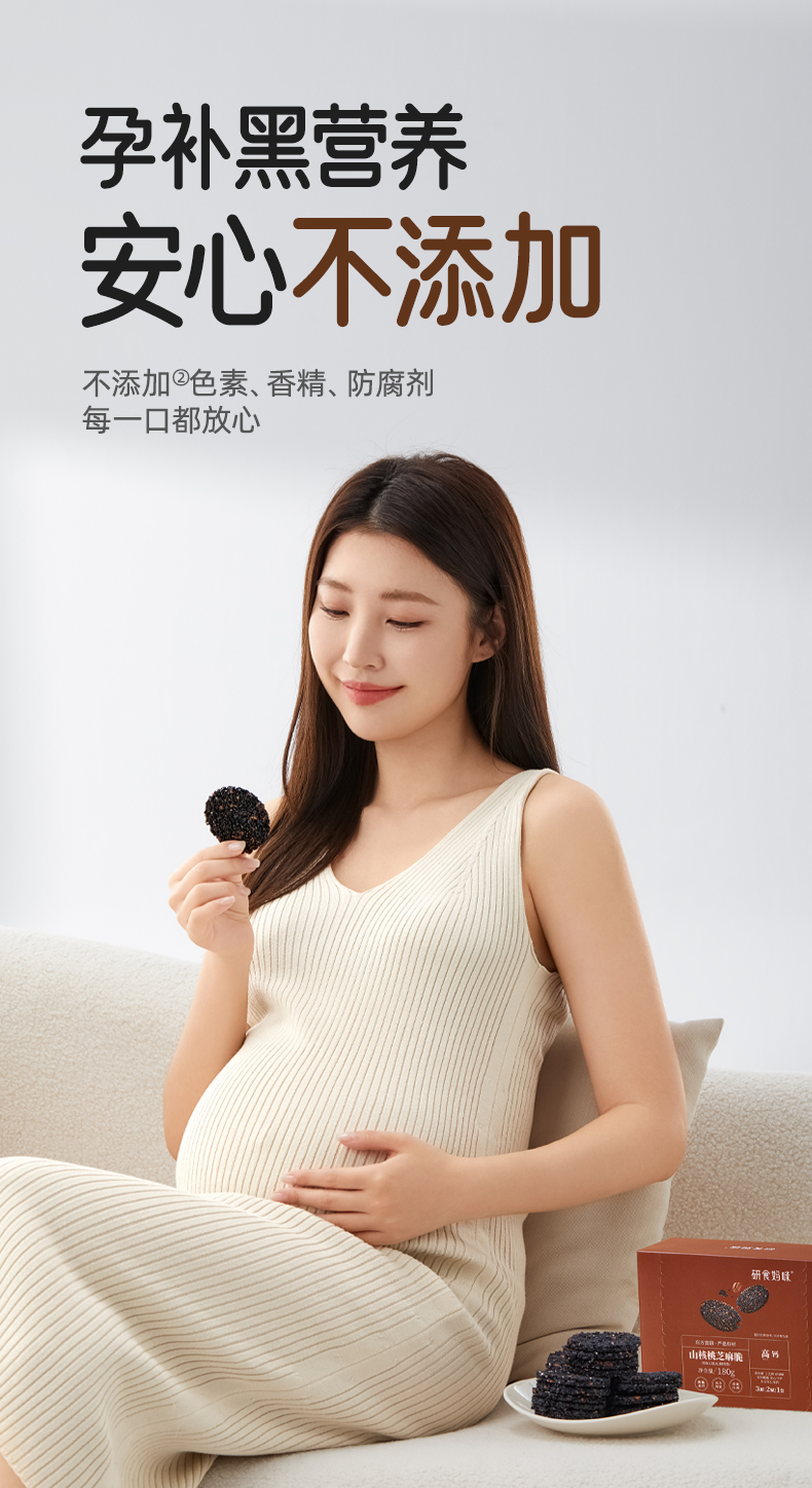 研食妈咪山核桃黑芝麻饼孕妇零食小吃营养孕期专用芝麻片