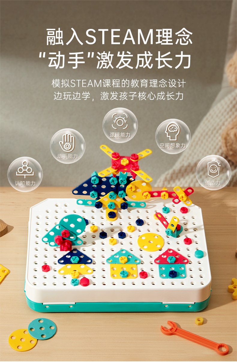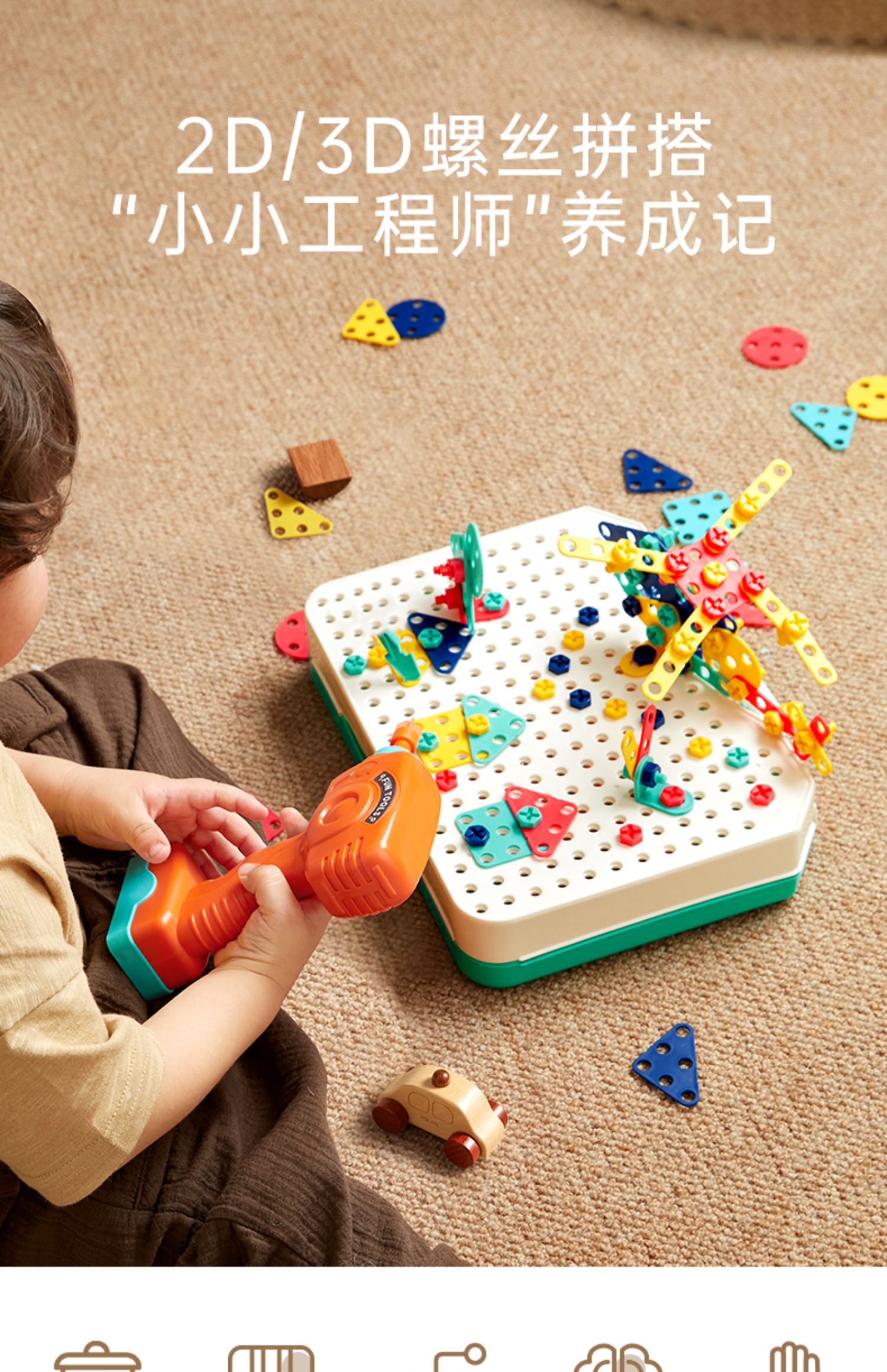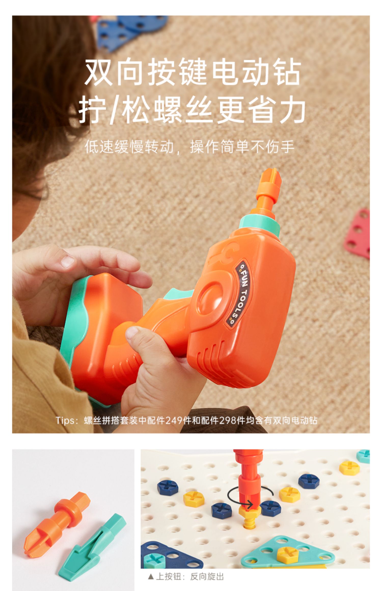 贝恩施拧螺丝钉玩具儿童益智动手组装拆装拼装电钻工具箱男孩3岁2