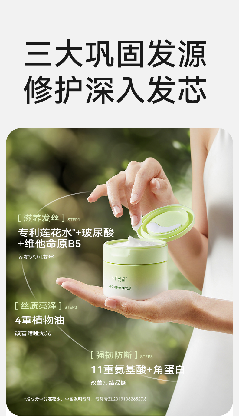 【满99-20/199-50】花悦发膜柔顺丝滑改善毛躁护发素保湿滋润发丝