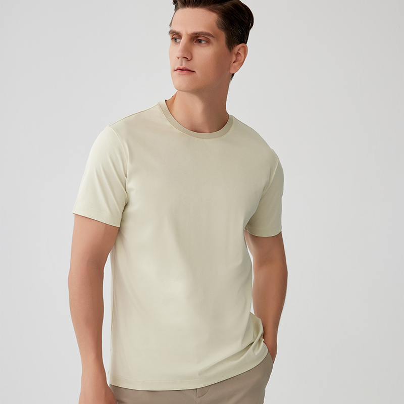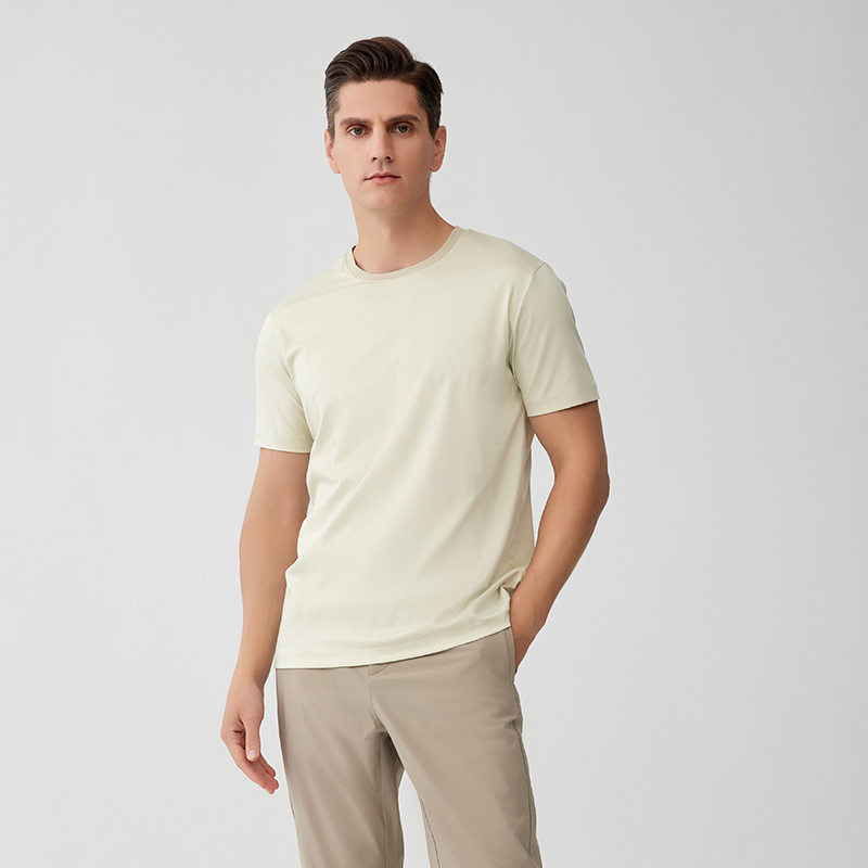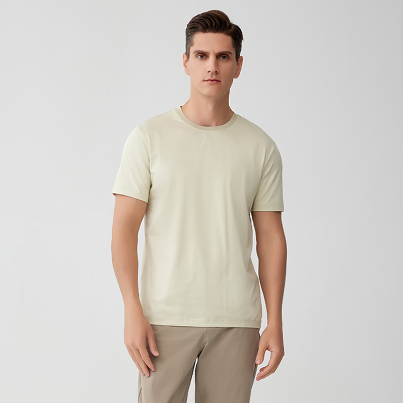 【100%棉圆领T恤】23年春夏新品男士薄款纯棉T恤纯色百搭薄款上衣