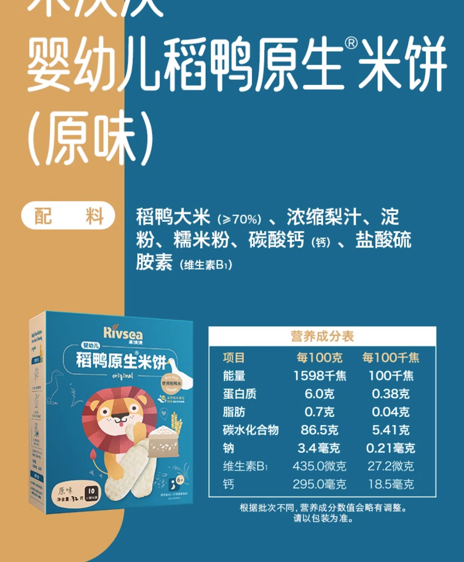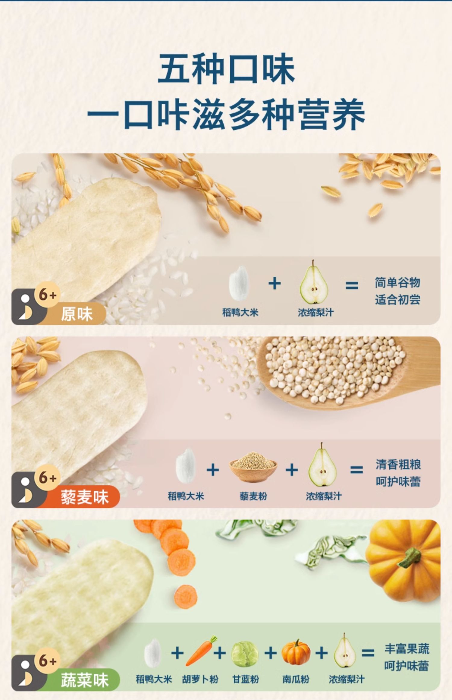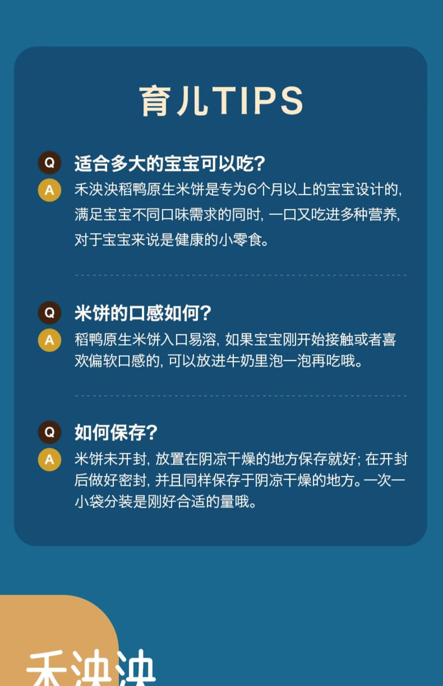 禾泱泱稻鸭原生米饼 宝宝零食婴儿辅食无添加盐儿童磨牙饼干6个月米饼系列