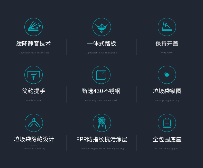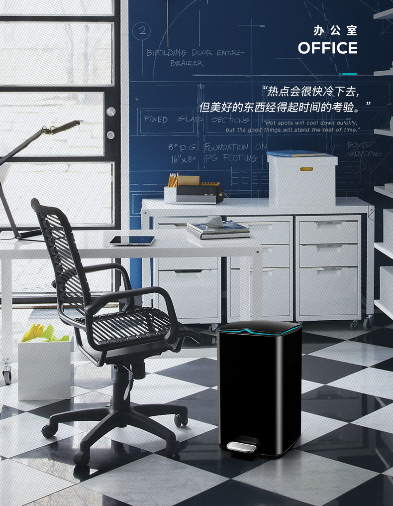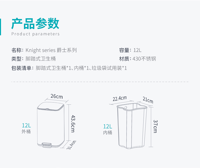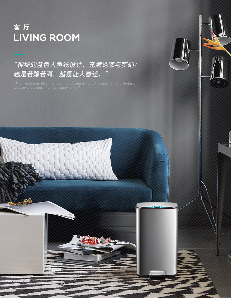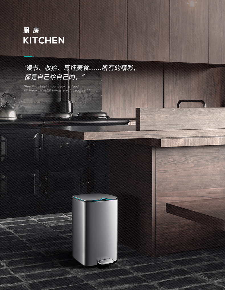 优百纳爵士系列 欧式方形不锈钢垃圾桶家用脚踏式 厨房客厅办公室