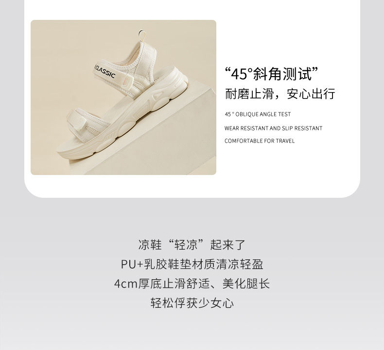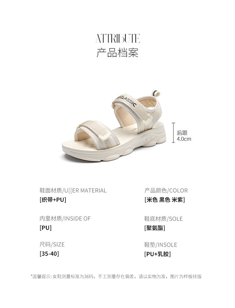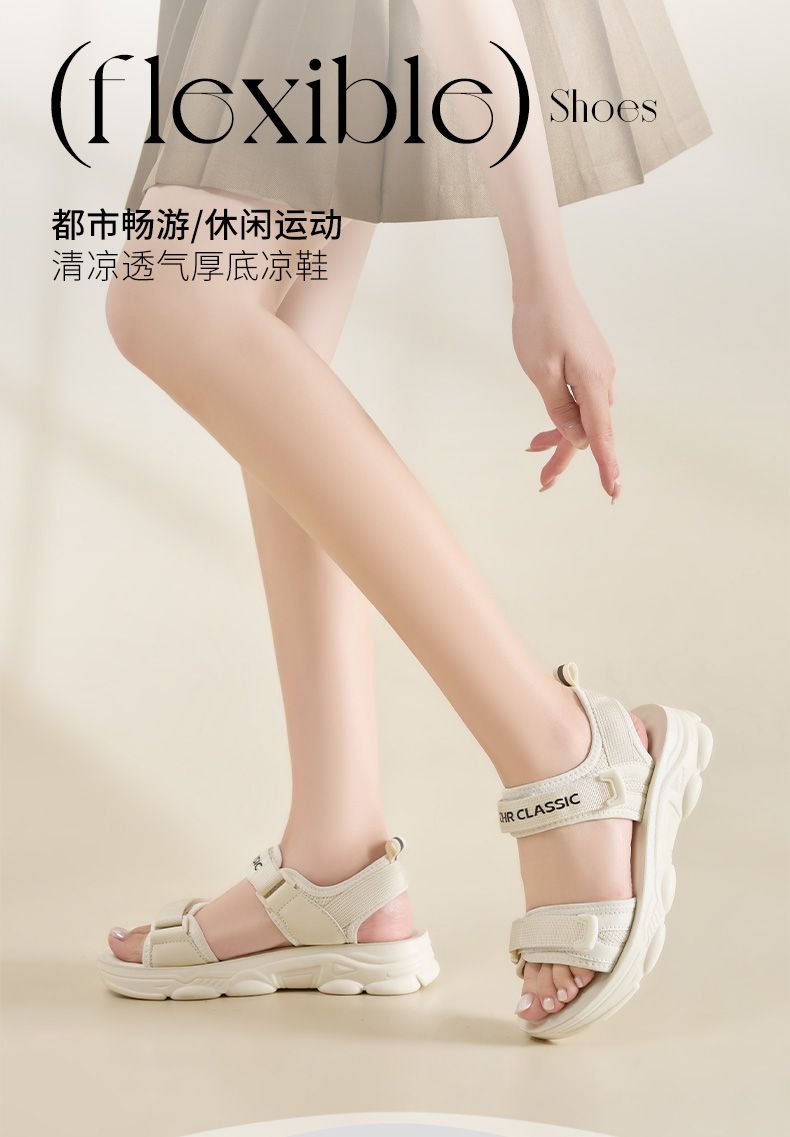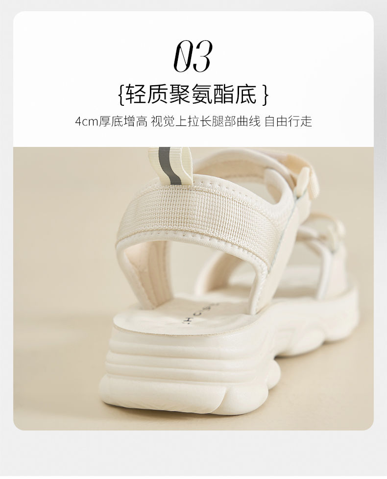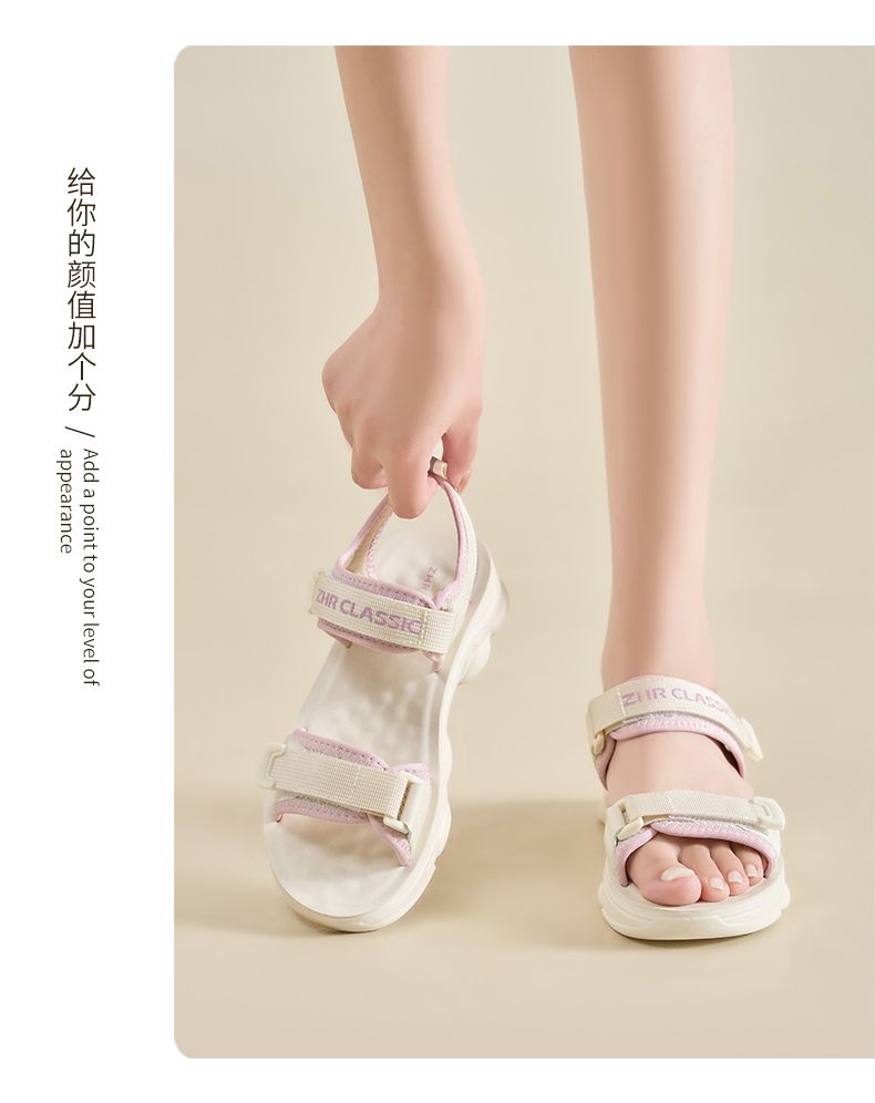 ZHR则则魔术贴运动凉鞋女2024夏季新款休闲百搭松糕厚底沙滩鞋女