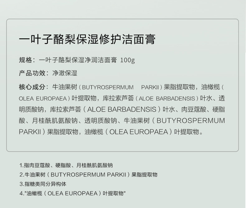 【新品洁面】一叶子氨基酸温和净润洁面乳100g-清洁卸妆保湿舒缓控油