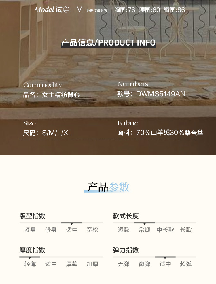 东黎 • 岛屿假日—云端芭蕾 桑蚕丝山羊绒女士春夏女士精纺背心 5149