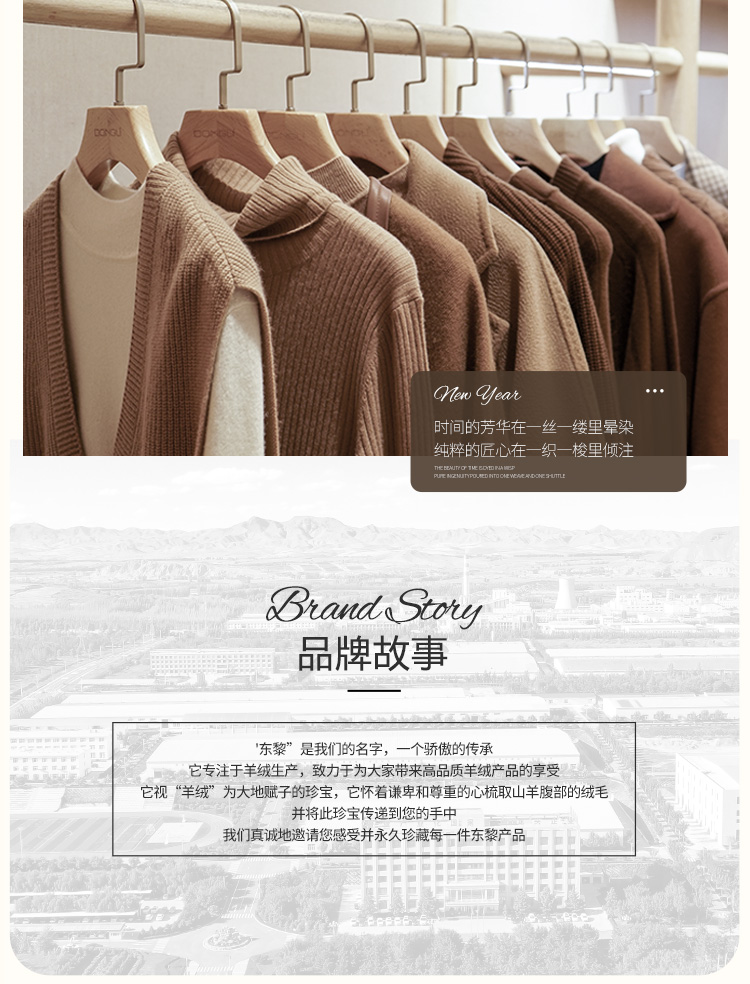 东黎羊绒是赤峰东荣集团自主品牌,自有牧场/羊绒制品全产业链优势,实现了羊绒从“牧场”到“商场”的华丽转变。
