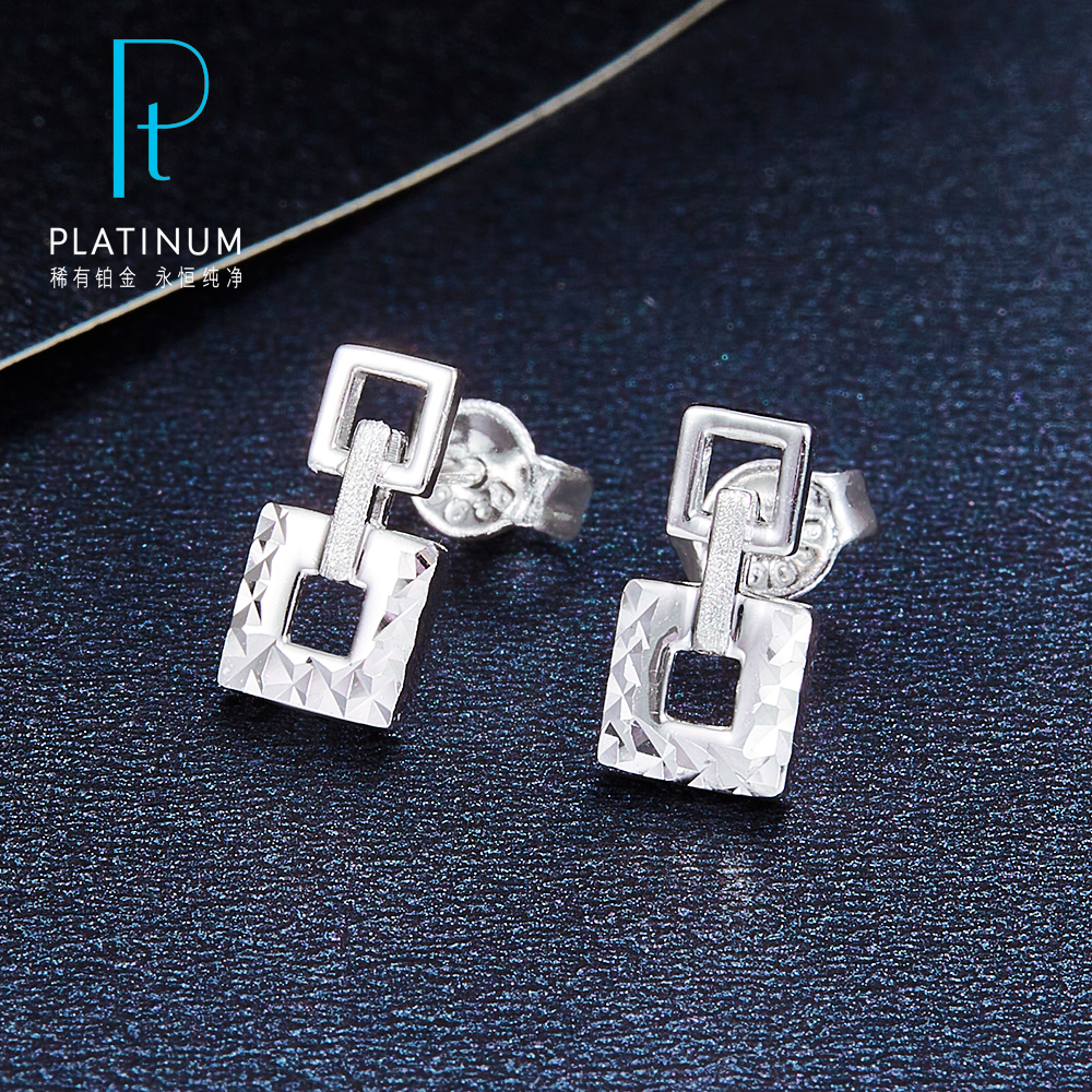 【限时8.8折】【线上铂金馆】PT950 【国际铂金协会】铂金几何方形耳钉(BES00031)预售产品下单后不退款不退货不换货不补差价)