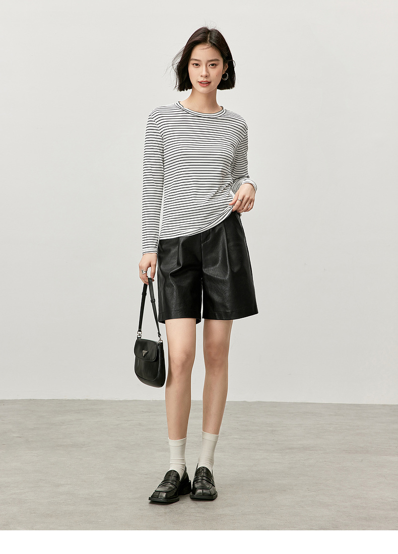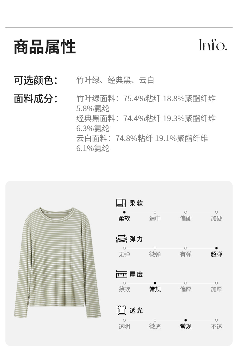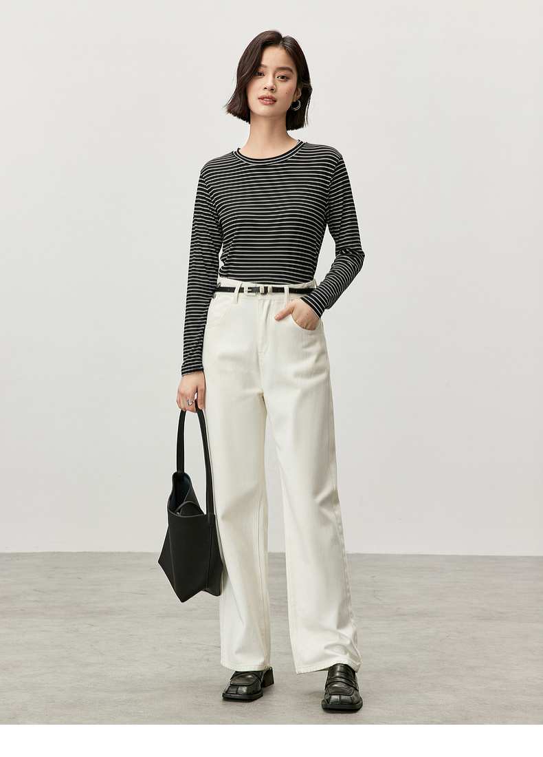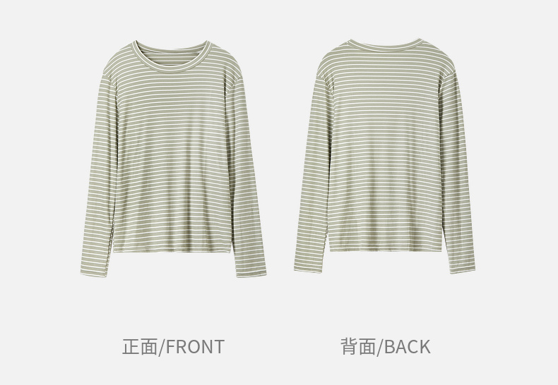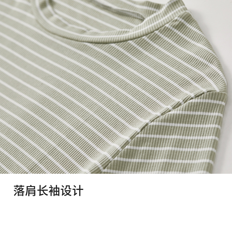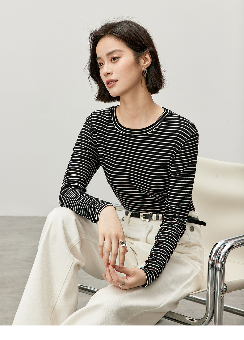 【内购】尚都比拉冬新款打底衫条纹显瘦藏肉舒适简约圆领T恤长袖上衣-W51T80212X
