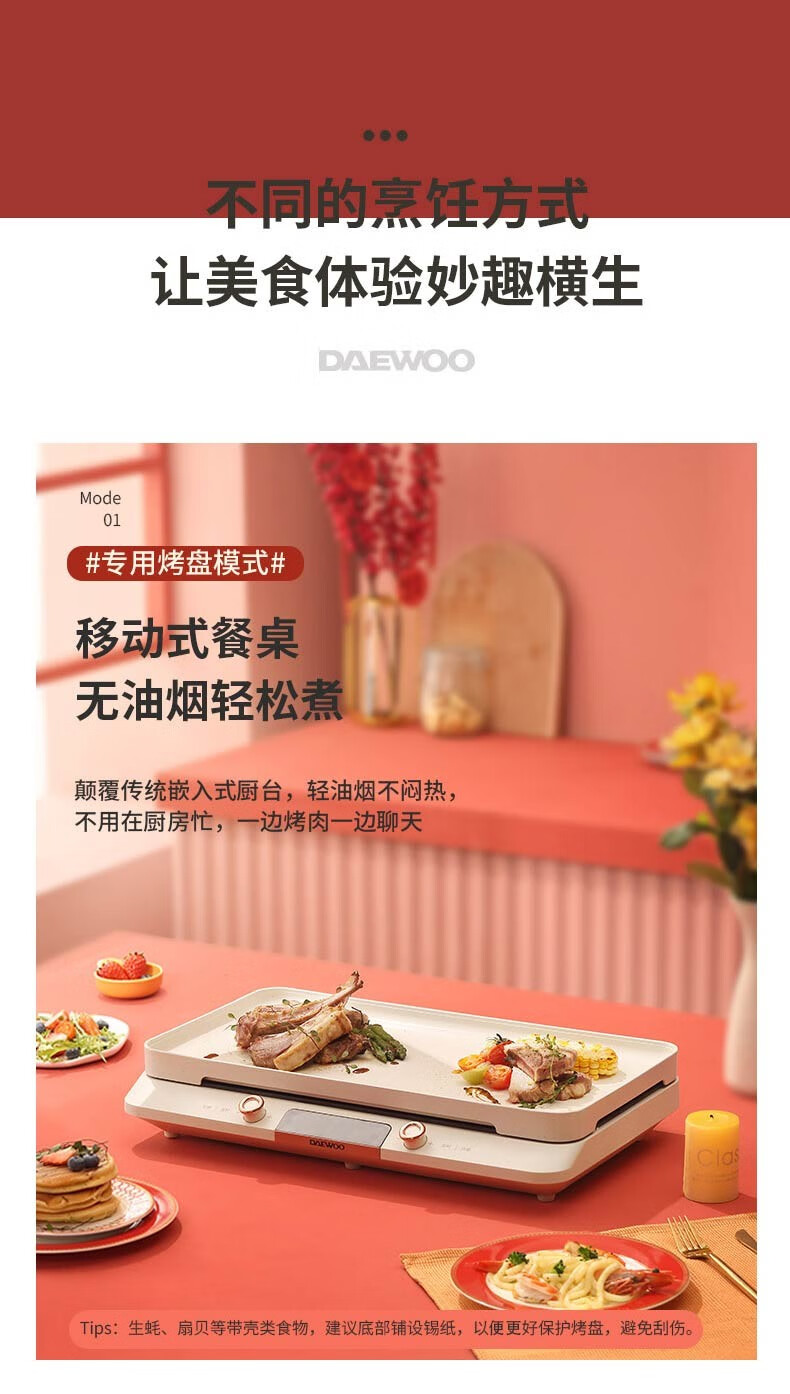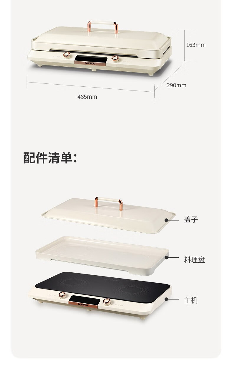 大宇(DAEWOO) 家用双灶多用途锅IH多功能料理盘DYHG-C20A1 4L