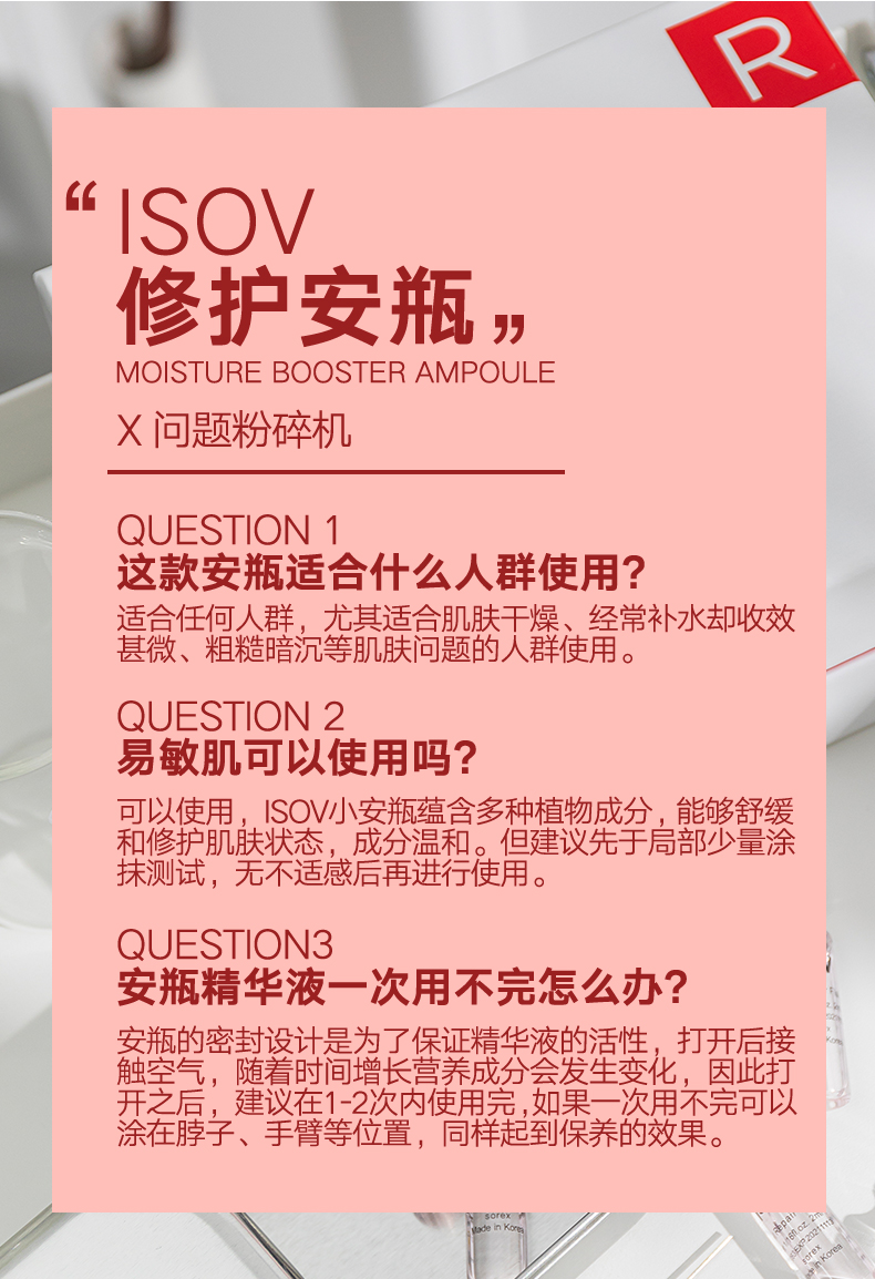 【素瑞施】Sorex ISOV/素瑞施(红参修复小安瓶)修护安瓶精华抗老淡化细纹痘印紧致肌肤20支/盒
