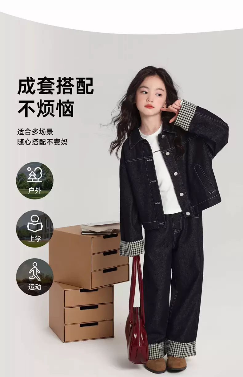 宸之昊儿童复古牛仔套装2025秋季上新女童牛仔裤牛仔外套两件套★ 商品图3