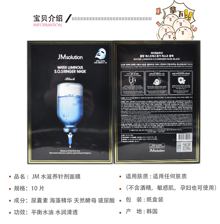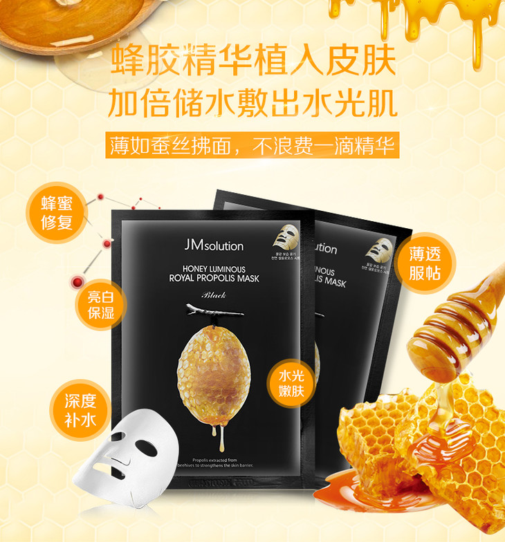 【官方品牌授权】韩国JM solution 蜂蜜/蚕丝/水光珍珠/深水炸弹/欧若拉樱花面膜 深层补水 10片