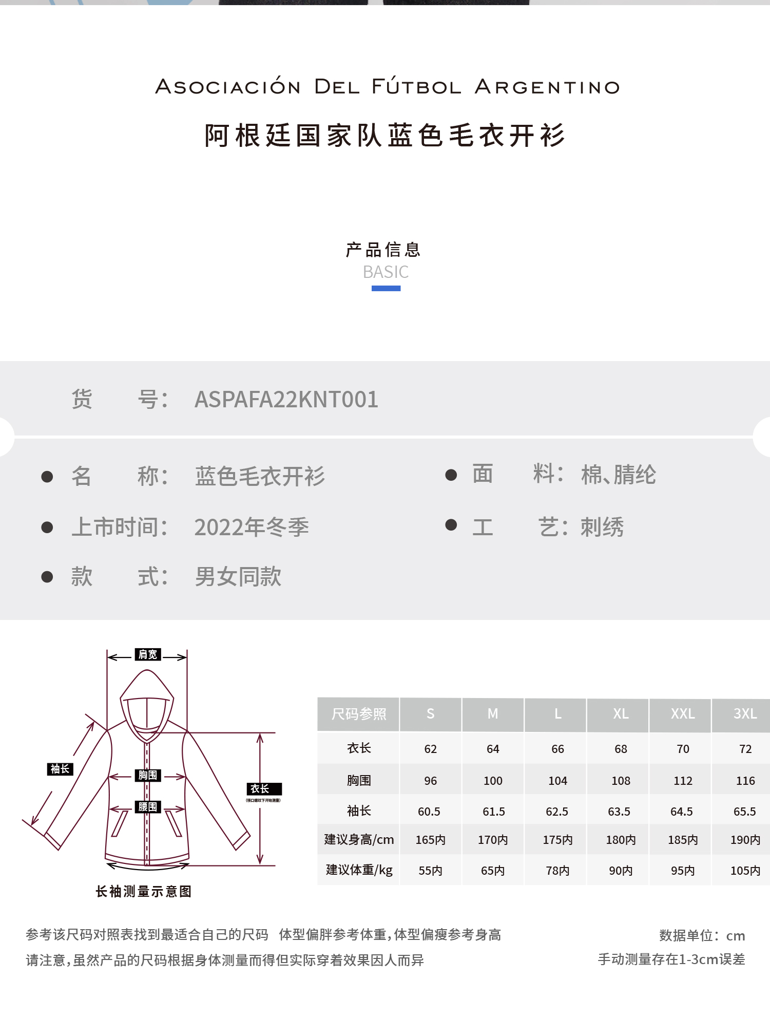 阿根廷国家队官方商品 | 新款毛衣开衫保暖舒适时尚潮流精致百搭