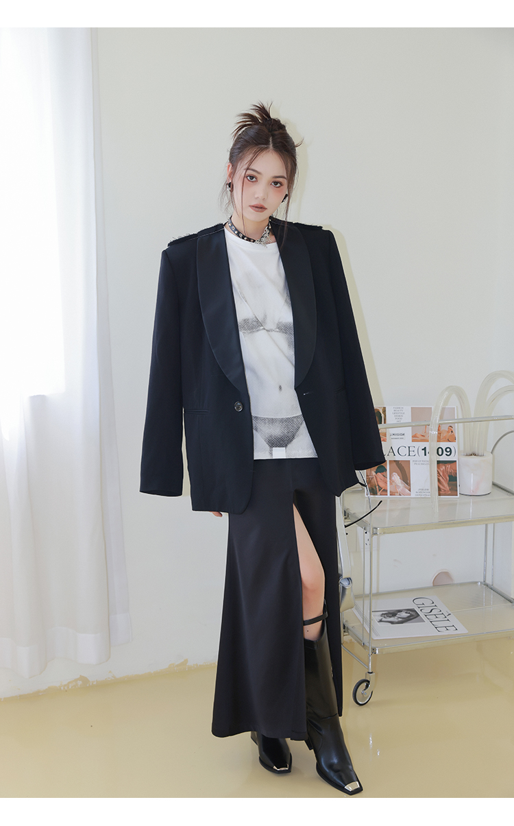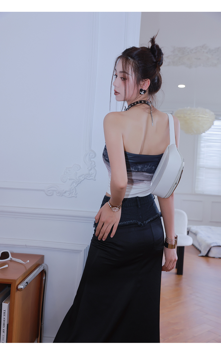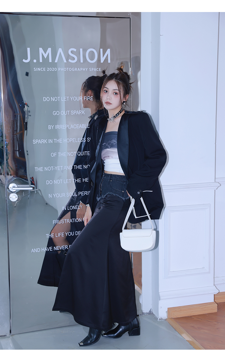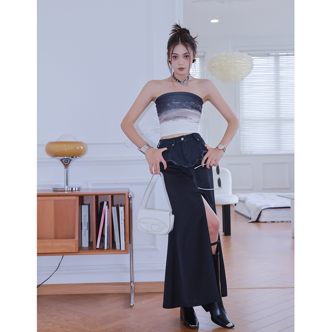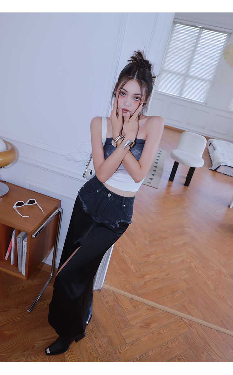 100元以内不退不换清仓捡漏 LIN CHAO ZHANG 【美人鱼牛仔裤】牛仔拼接缎面半裙
