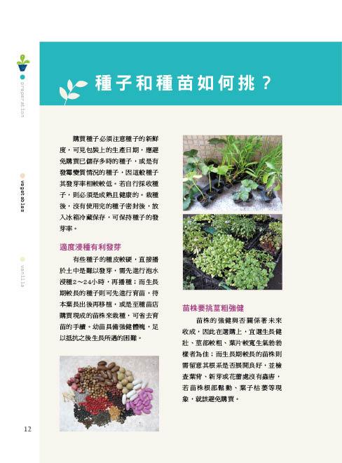 作者因喜好而就讀園藝系,一路以來,在種菜的過程中不斷精進,特別將種菜心得分享出來,並將種菜關鍵的過程以圖解做說明。