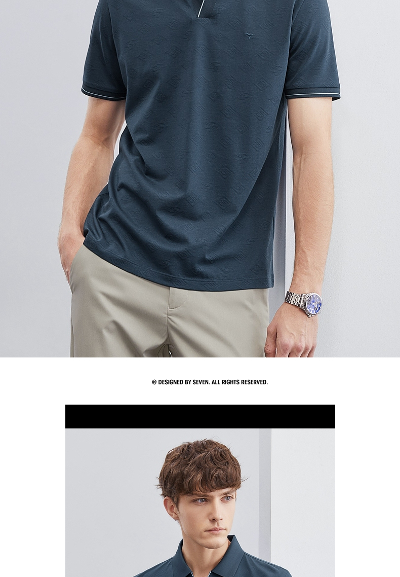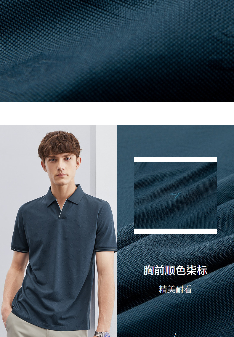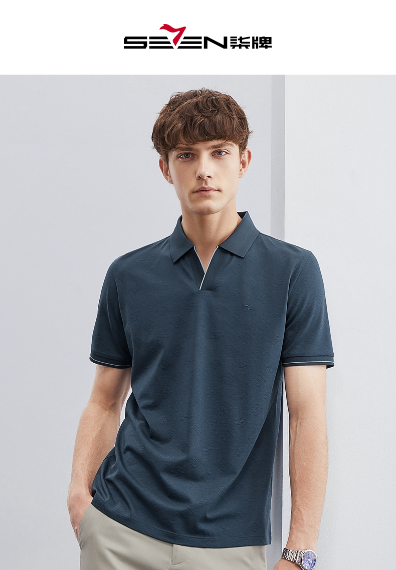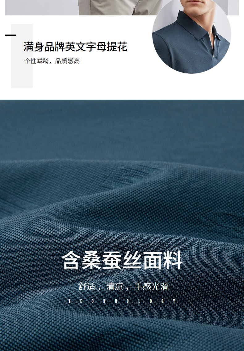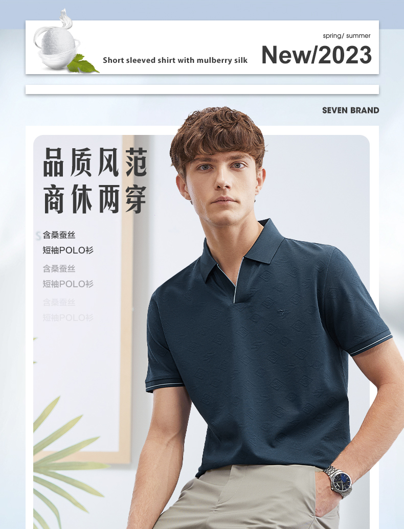 【含桑蚕丝】柒牌短袖polo衫男夏季新款商务休闲提花翻领T恤 124T70170