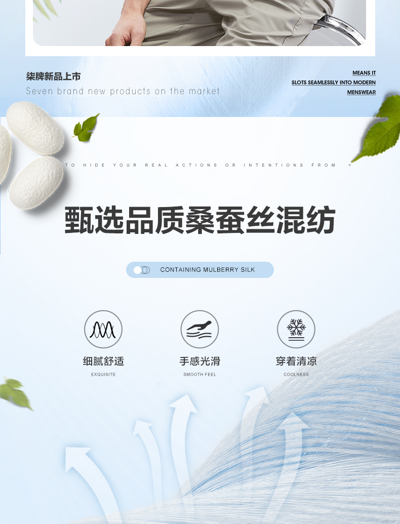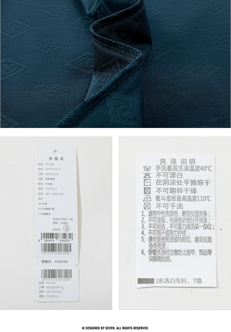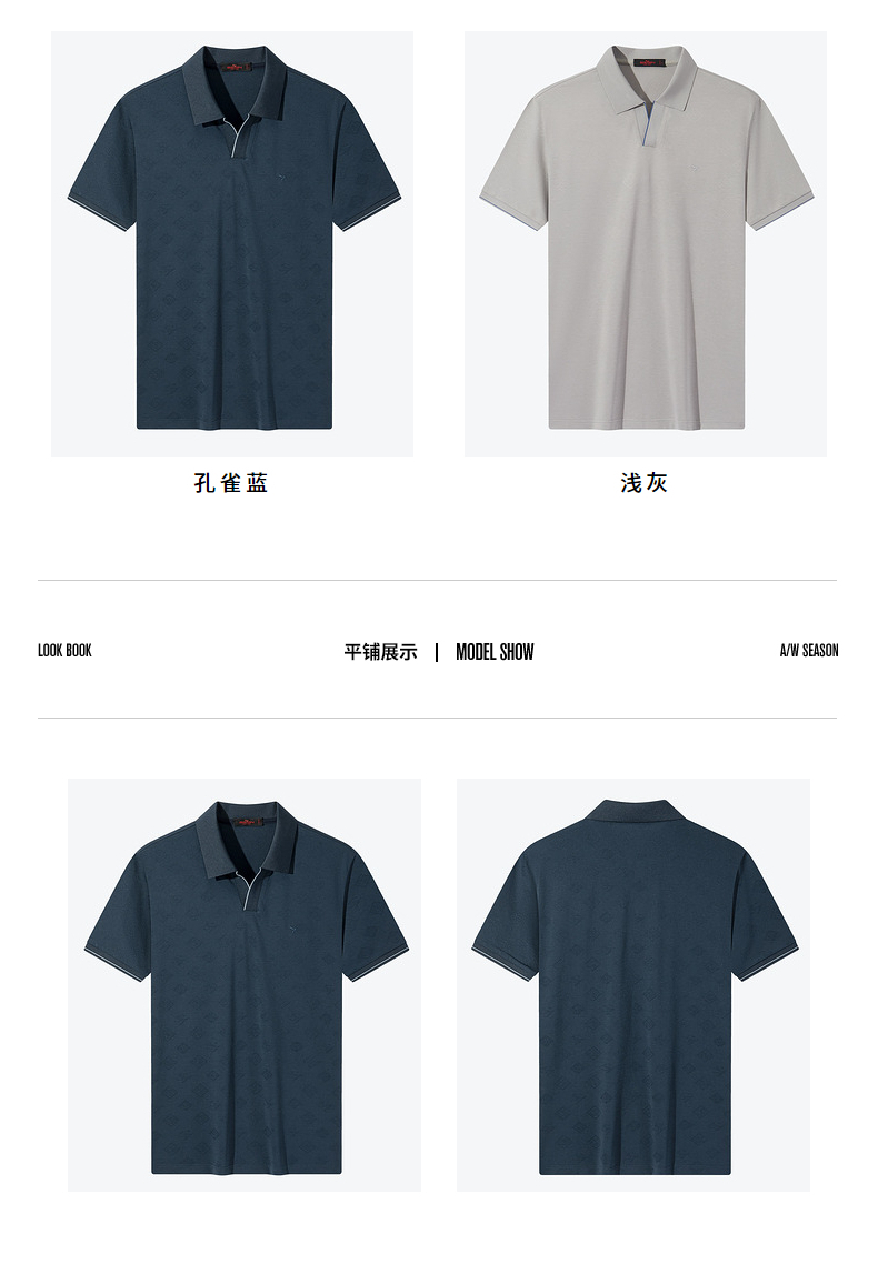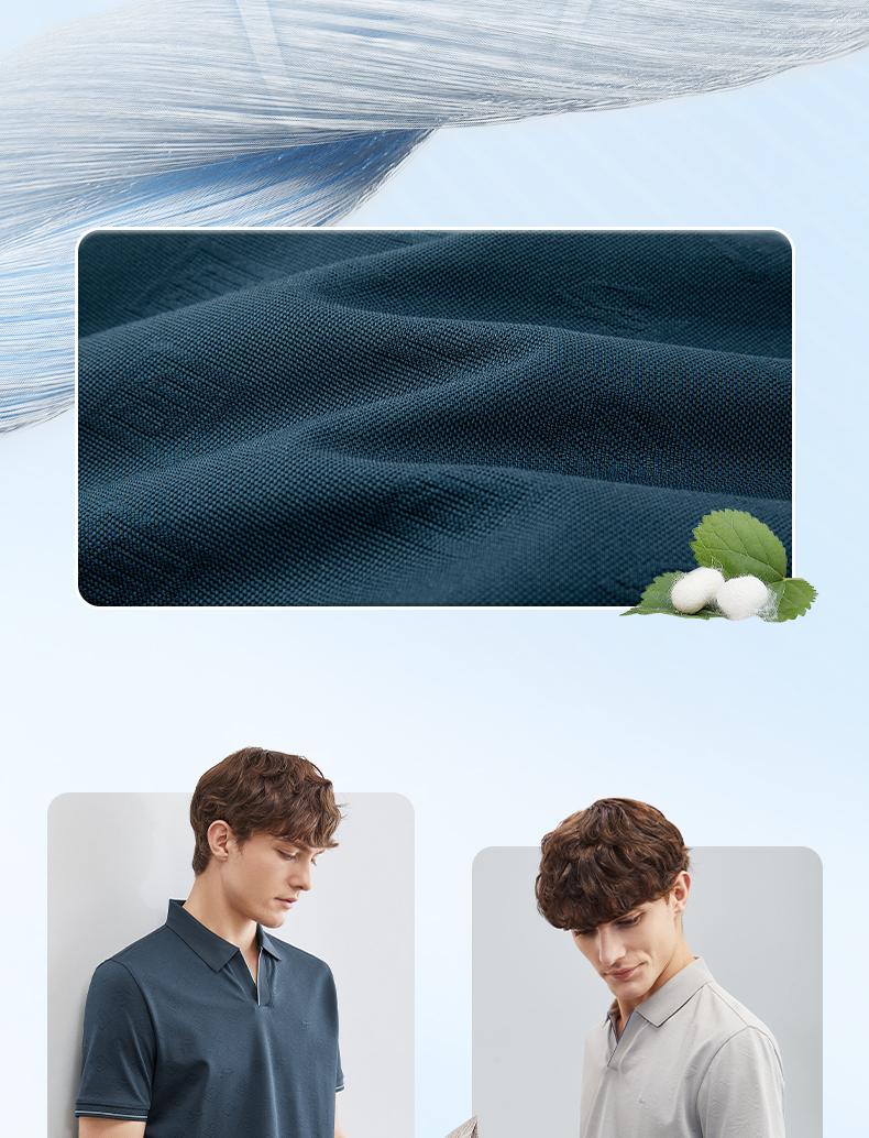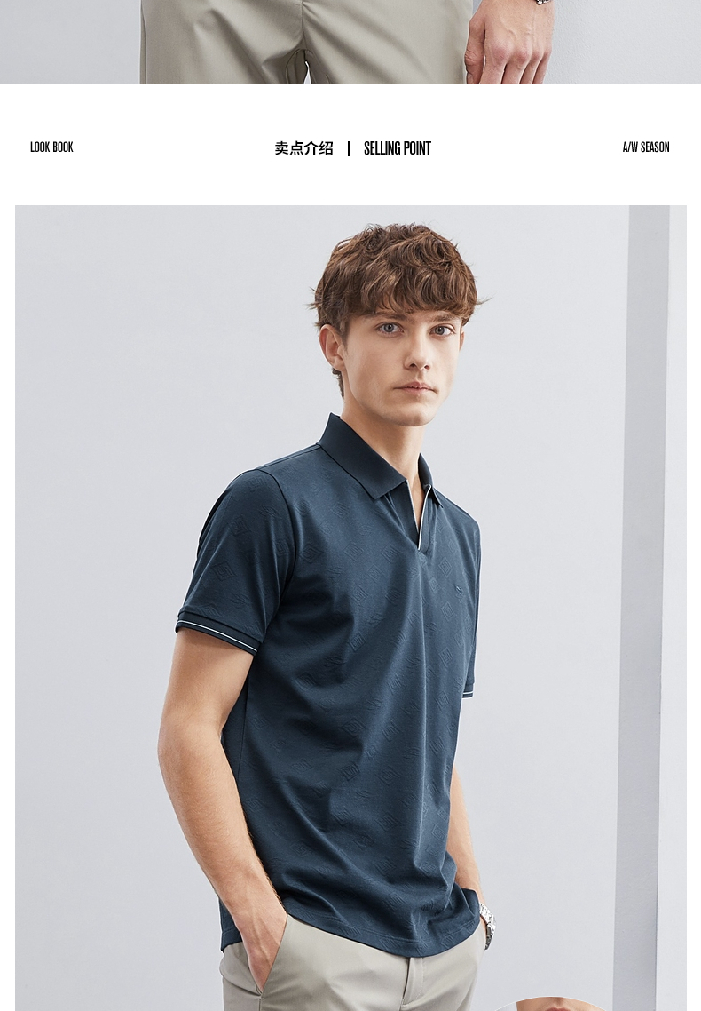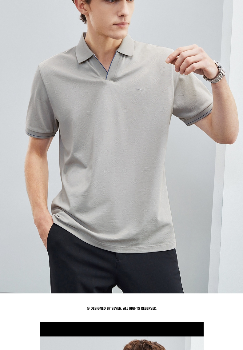 【含桑蚕丝】柒牌短袖polo衫男夏季新款商务休闲提花翻领T恤 124T70170