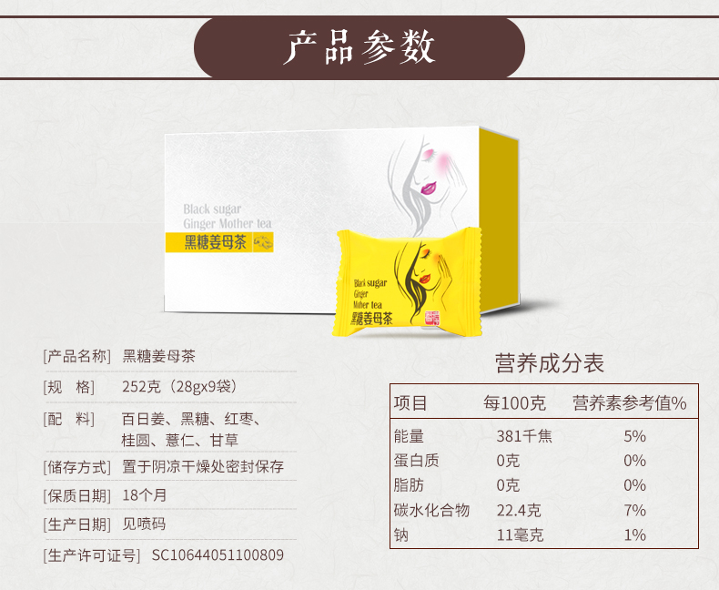 百日姜 姜母茶礼盒(黑糖姜母茶+红枣姜糖块)