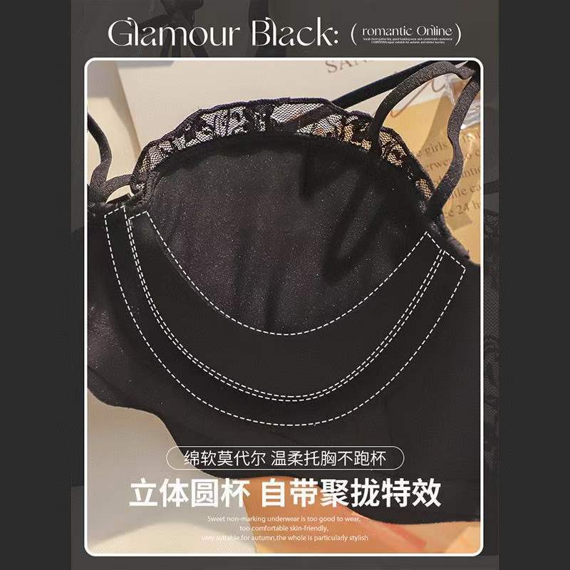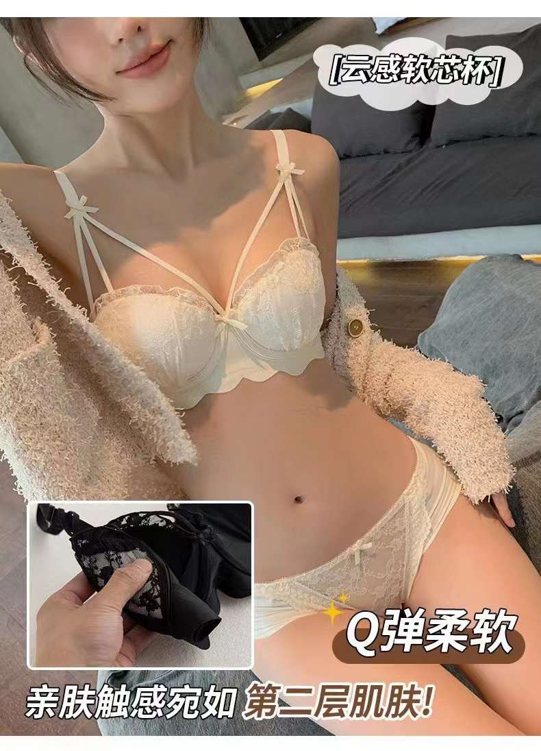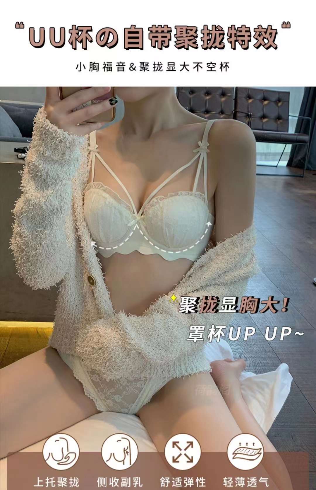 黛唯梵新款潮花汐拾少女内衣俏皮无钢圈蕾丝弹力侧收不空杯柔软文胸罩