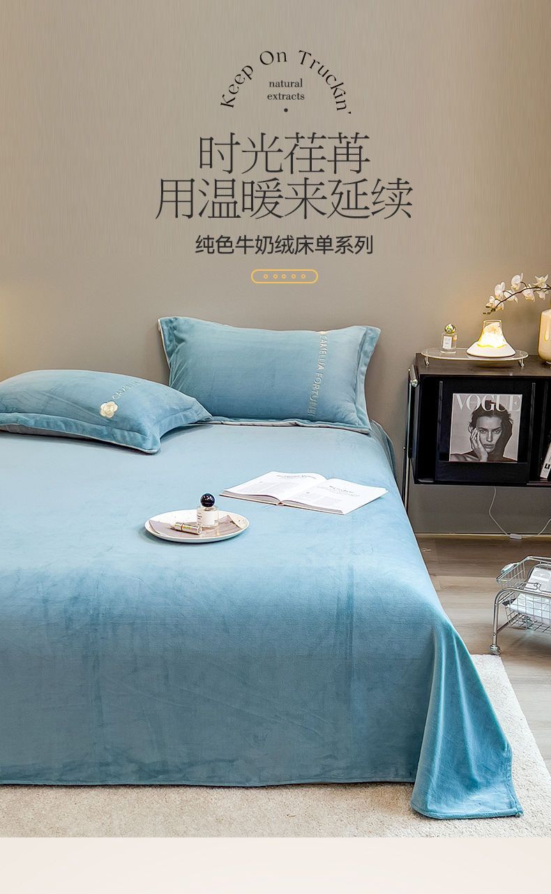 牛奶绒床单单件冬季加厚珊瑚绒法兰绒加绒保暖被单三件套exo8