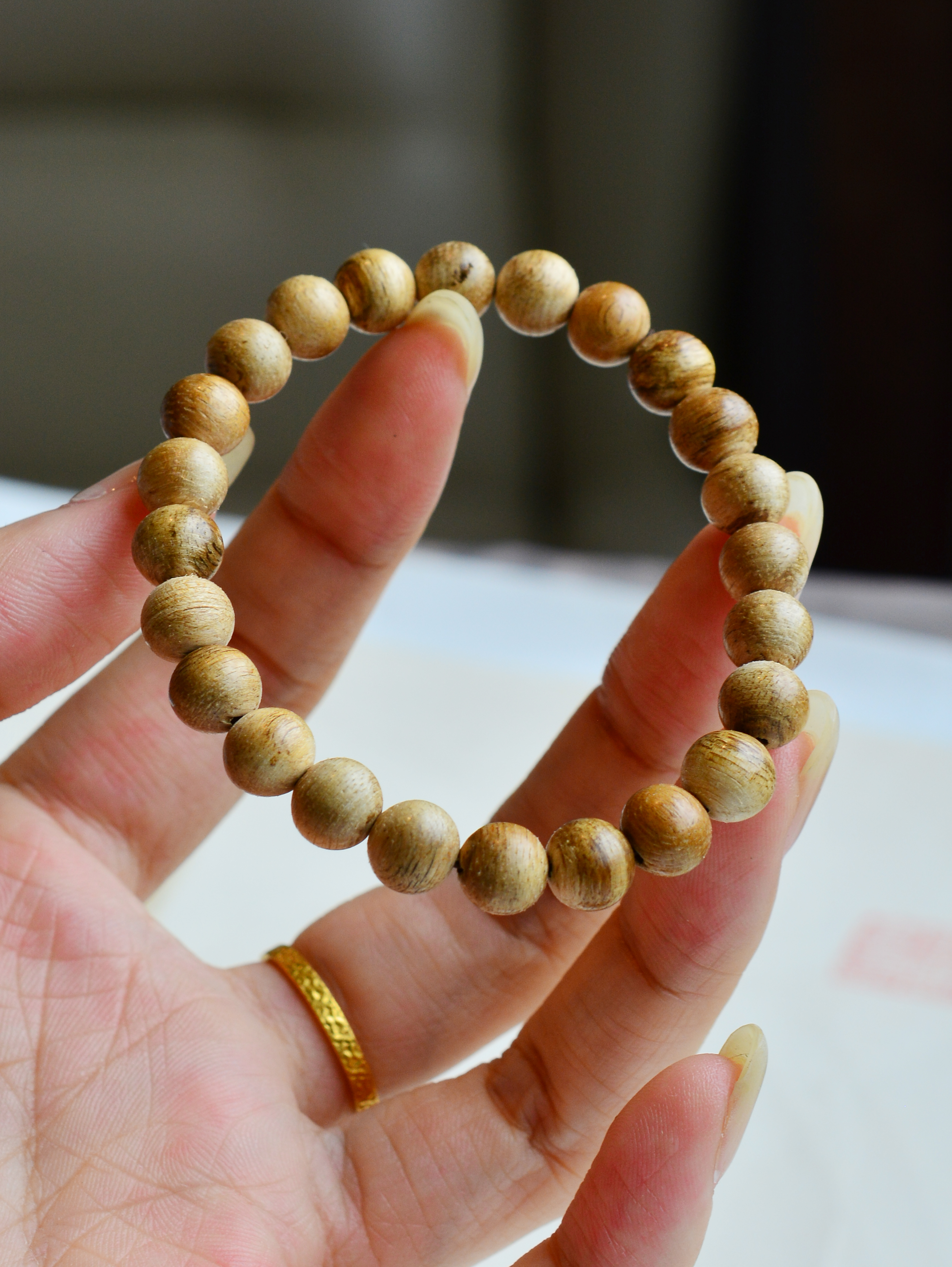 【描述】小巧雅致,肌理苍劲内敛,香带清劲凉意,药甜沉稳,无张扬之气,有山野之息。单圈素串,简洁利落,腕间一抹沉香,藏岁月醇厚,守日常清宁