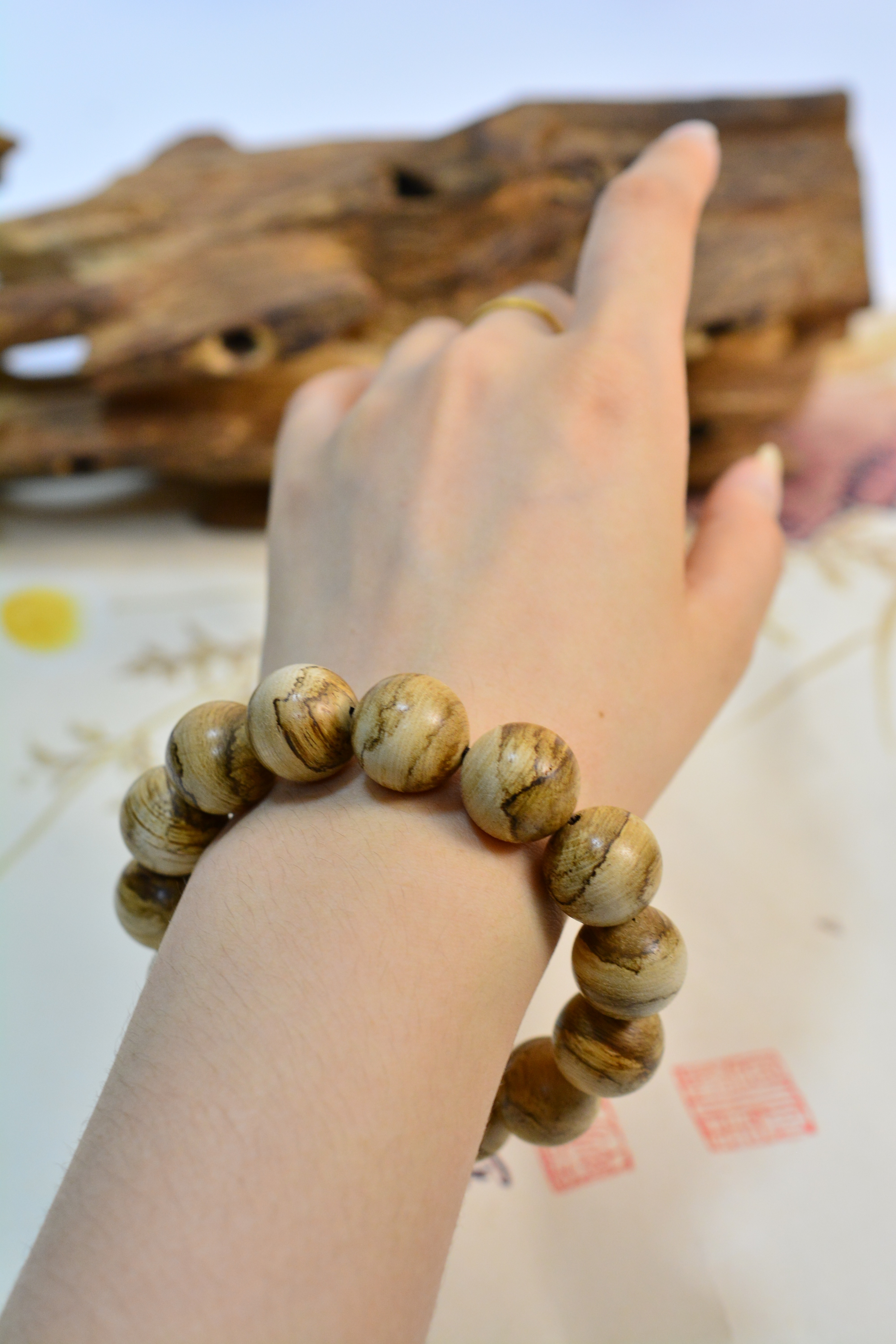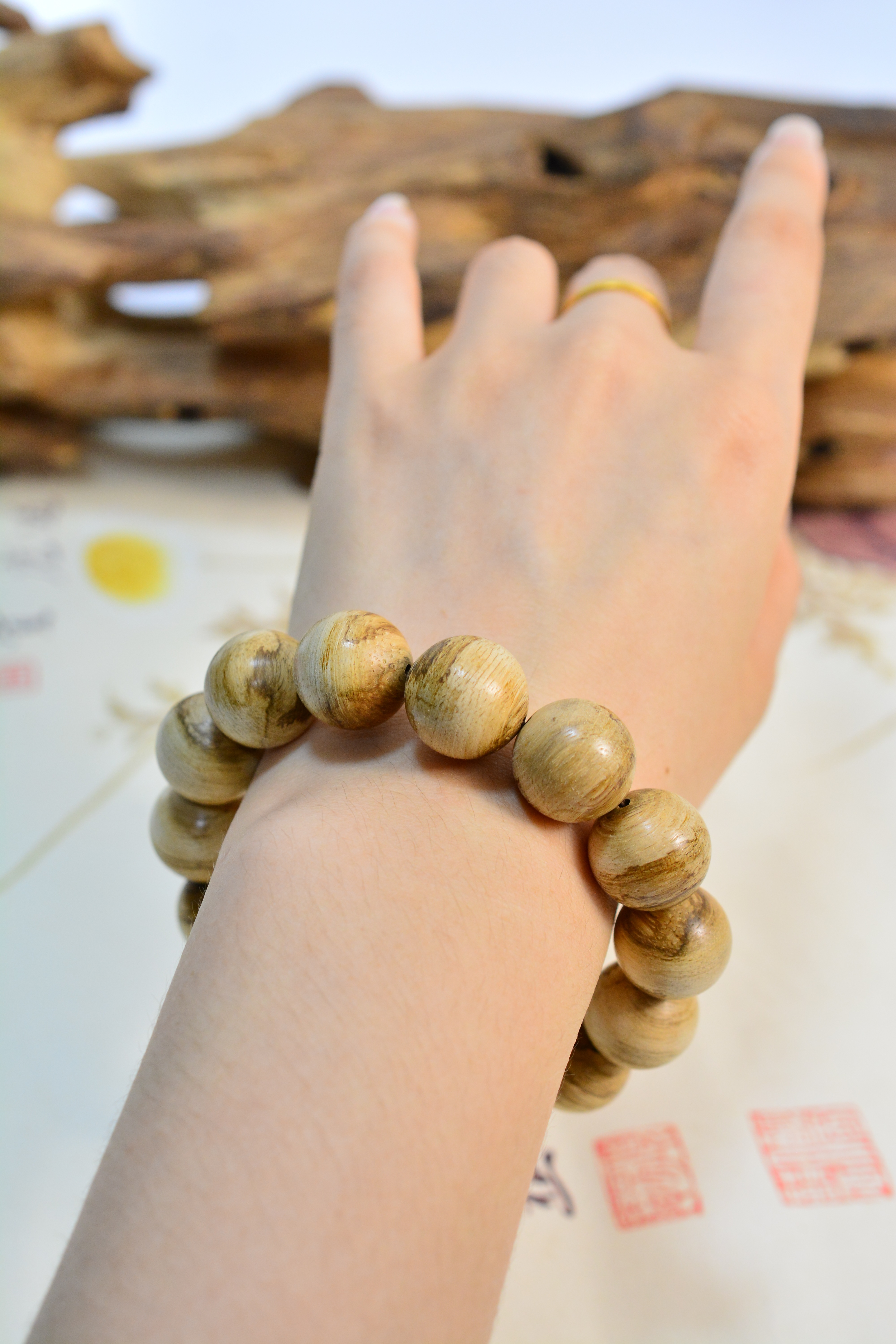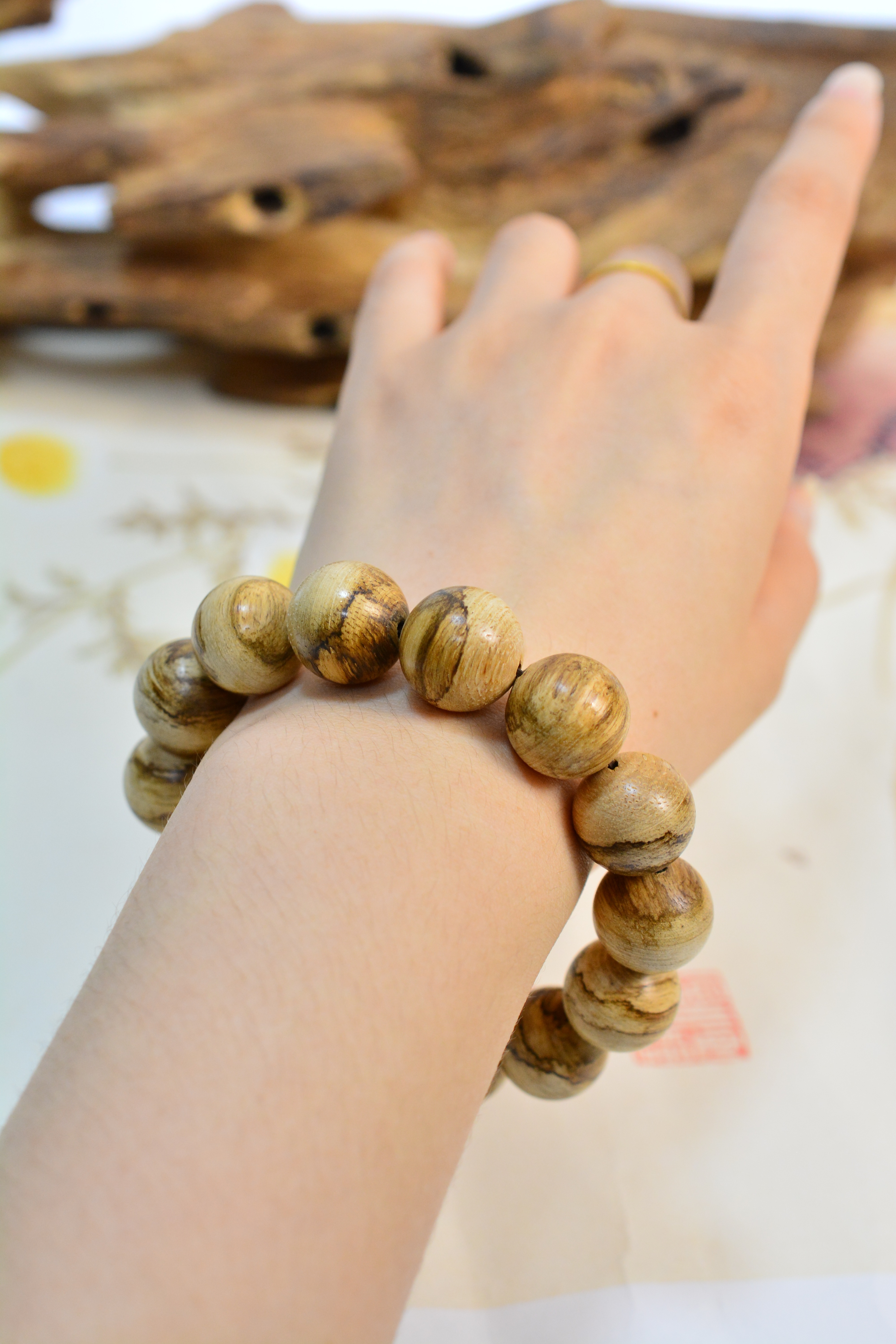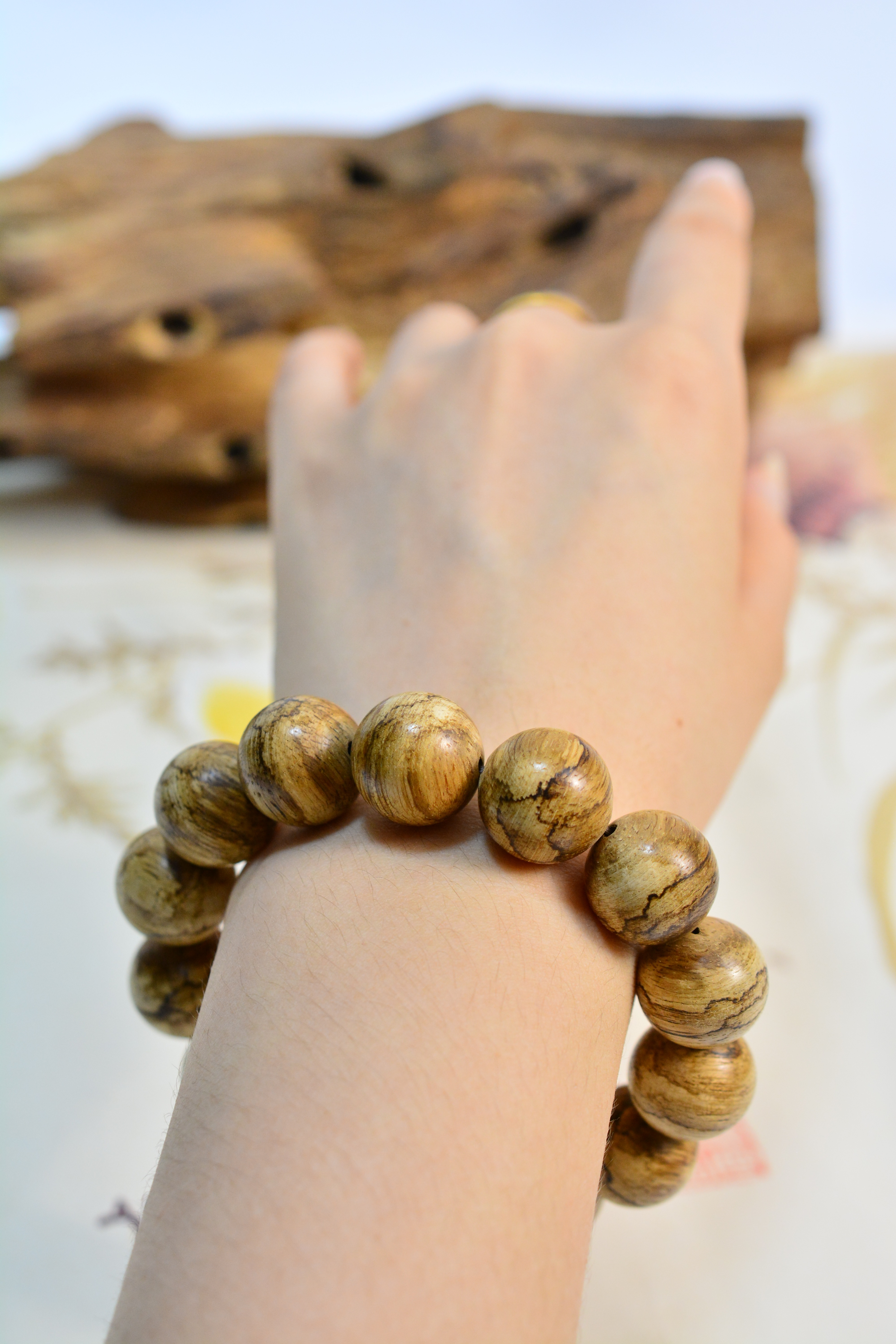 【描述】大珠径大气饱满,野料肌理苍劲,香韵清劲沉稳,凉透带药甜,自带山林旷野之气。单圈素串,不事雕琢,腕间沉稳压手,贵气藏于质朴,静气自生。
