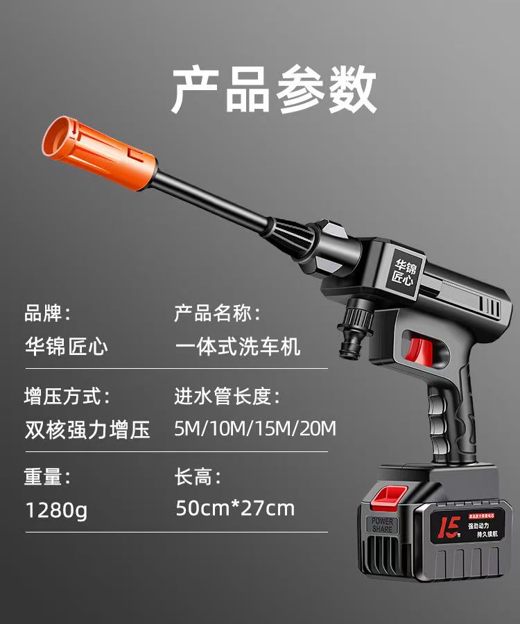 无线超高压洗车机大功率无刷电机洗车高压水枪家用打药浇菜喷雾器