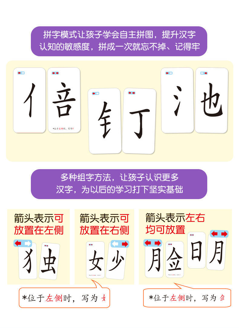【儿童识字智力开发!汉字拼拼乐】亲子早教认知卡片,拼偏旁部首组合,魔法汉字拼字游戏牌,学生小孩宝宝互动益智桌游玩具