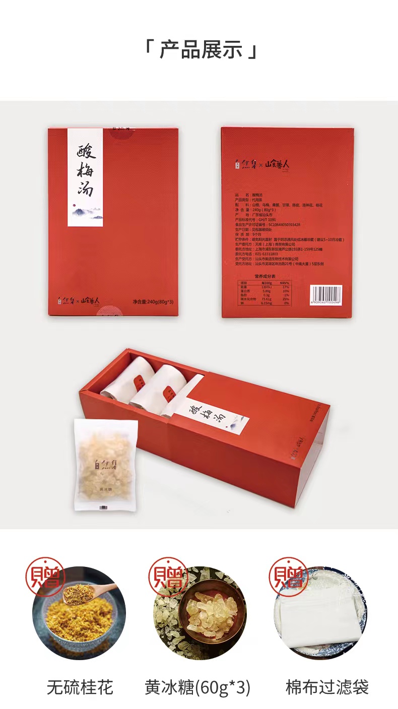 【买一送一 保质期26.7.27】自然集 酸梅汤原料包 老北京风味 安心食材 汤料包食材 煲汤 送冰糖 240g/盒
