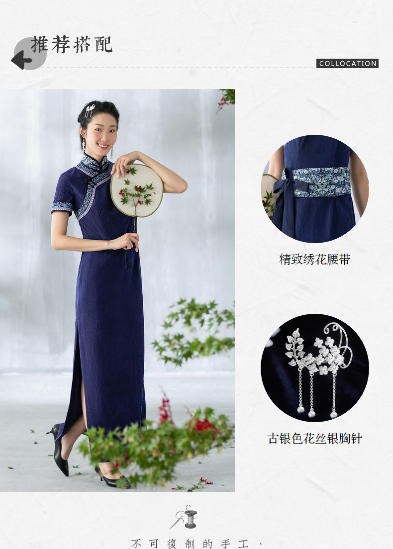 【林栖设计小店】【少量现货】香云纱系列复古绣花短袖中国风改良版旗袍女 1903241