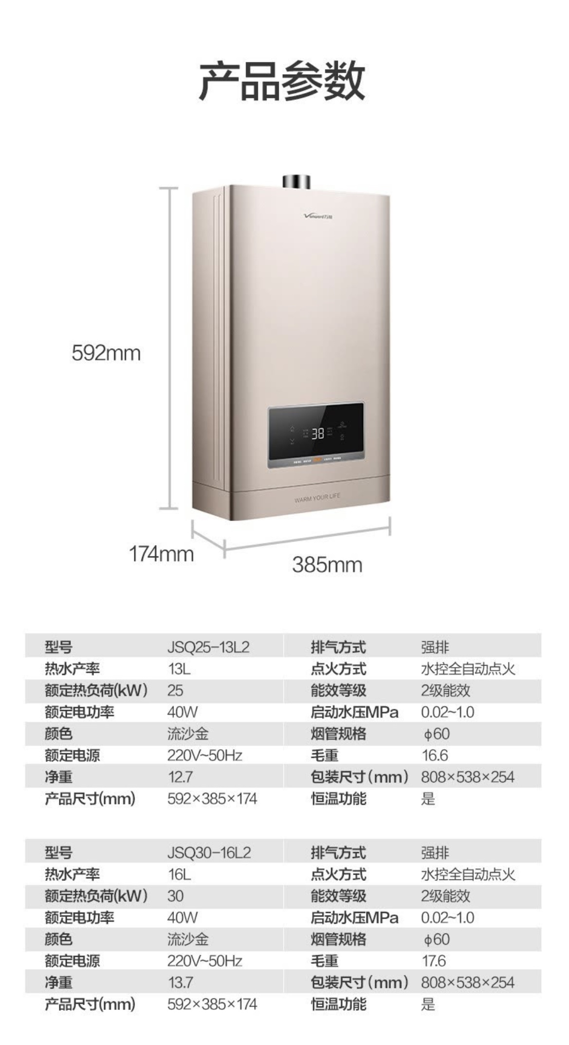 万和(Vanward)热水器JSQ30-16L2(16升天然气)