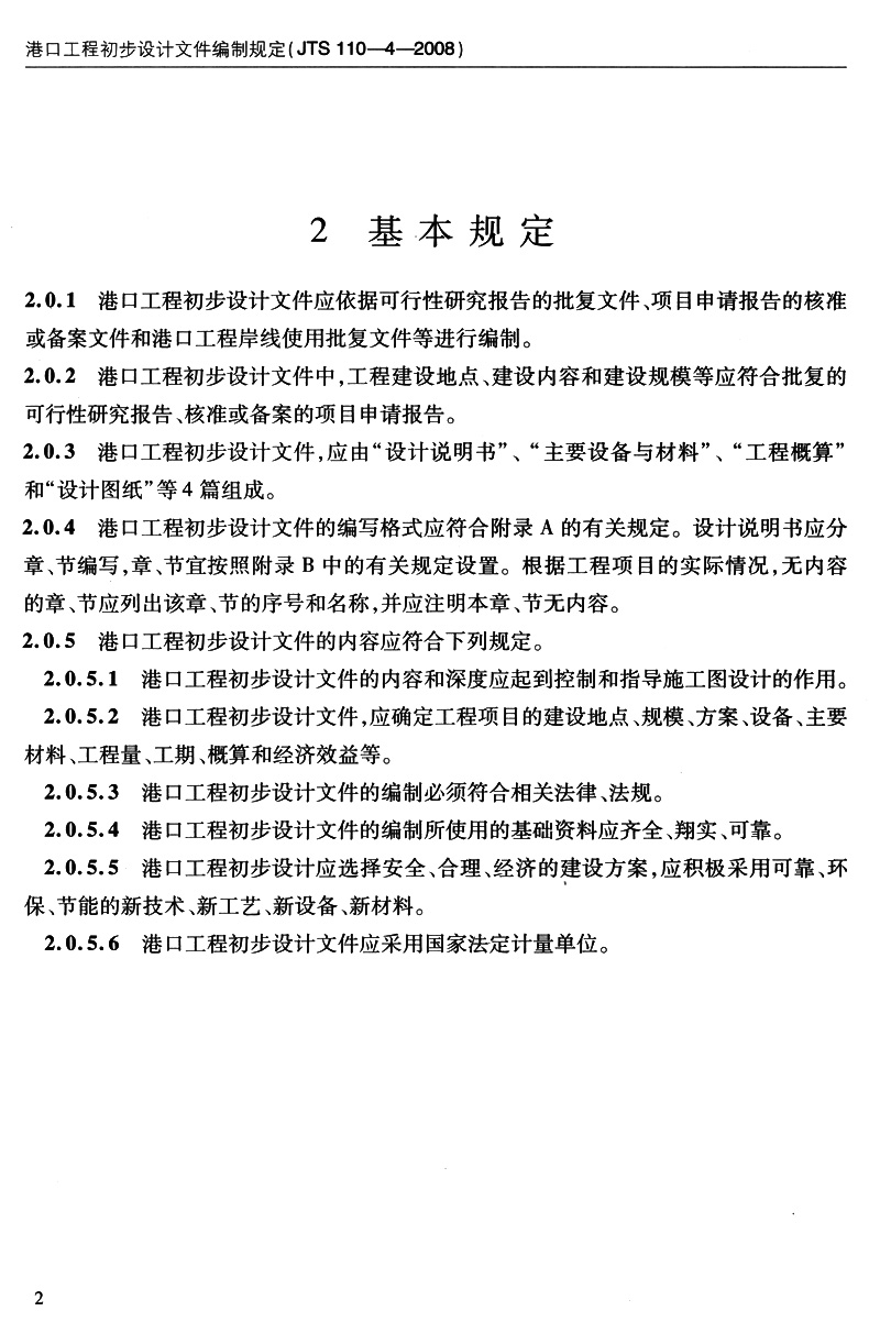 港口工程初步设计文件编制规定 JTS110-4-2008