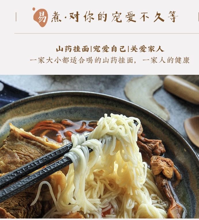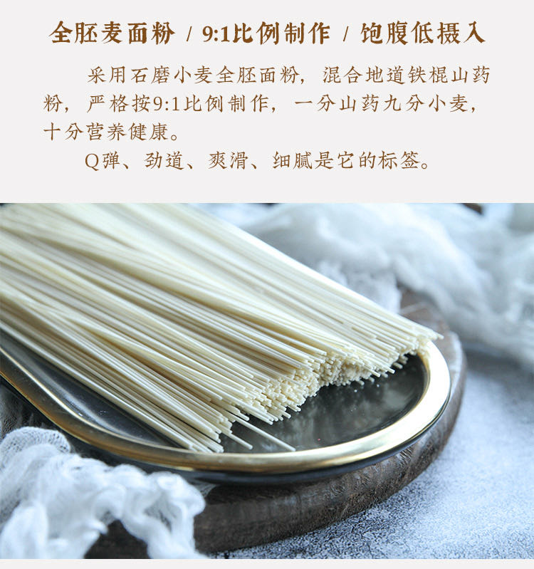 【产品特点】:采用温县铁棍山药、豫北小麦制作,爽滑劲道,口感香甜,营养健康,适合全家享用!