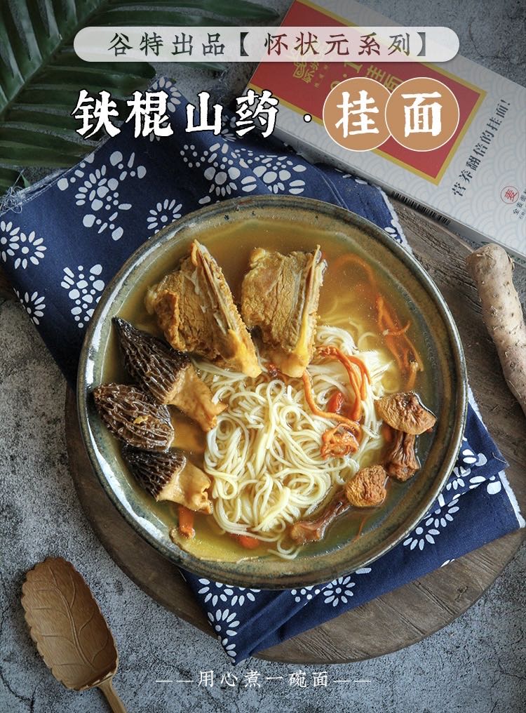 【食用方法】:滚水放入铁棍山药挂面,煮3分钟即可,可做捞面、汤面、卤面、焖面