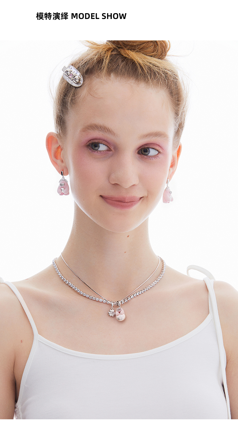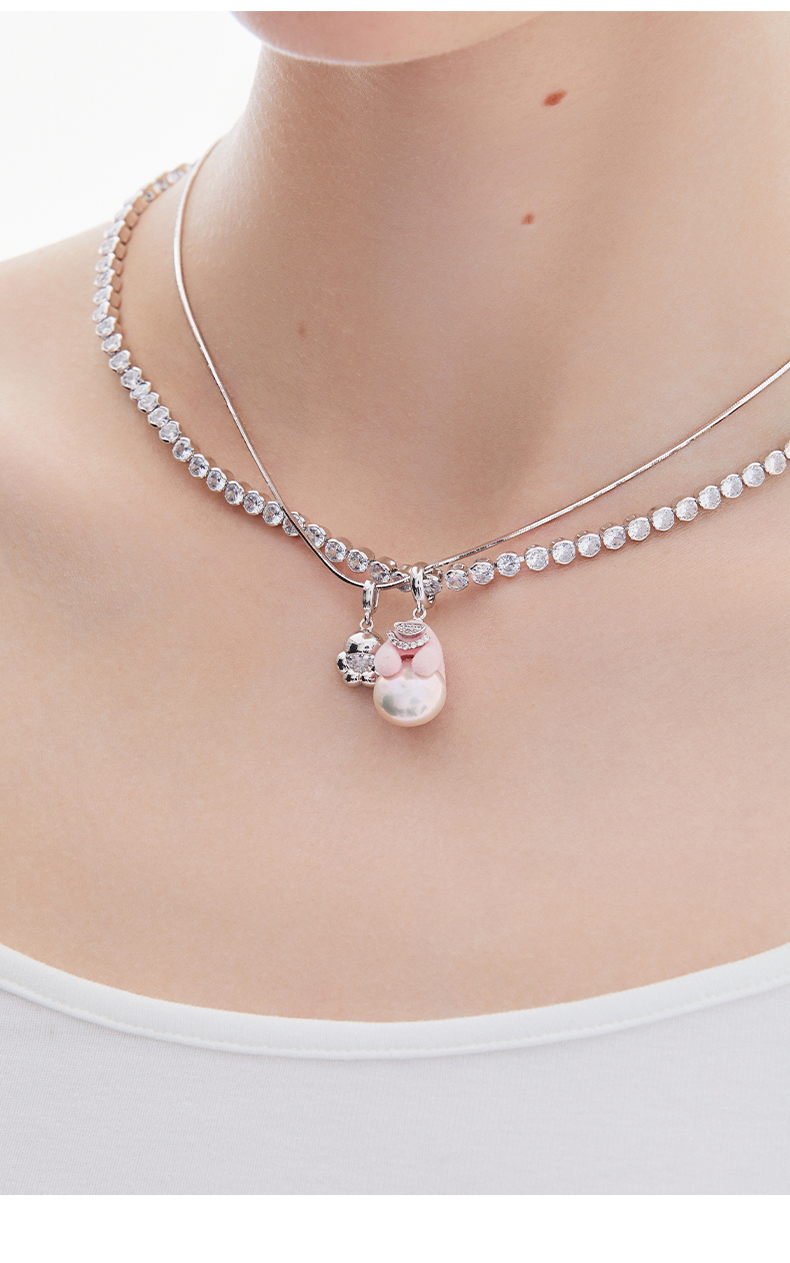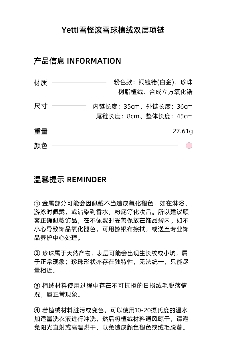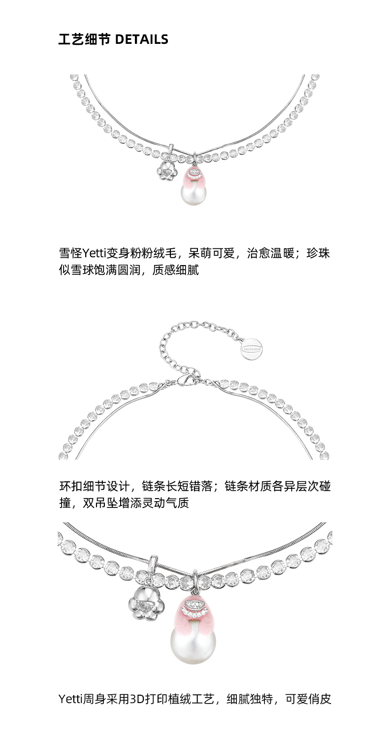 lost in echo2023秋冬新品Yetti雪怪滚雪球植绒双层珍珠项链