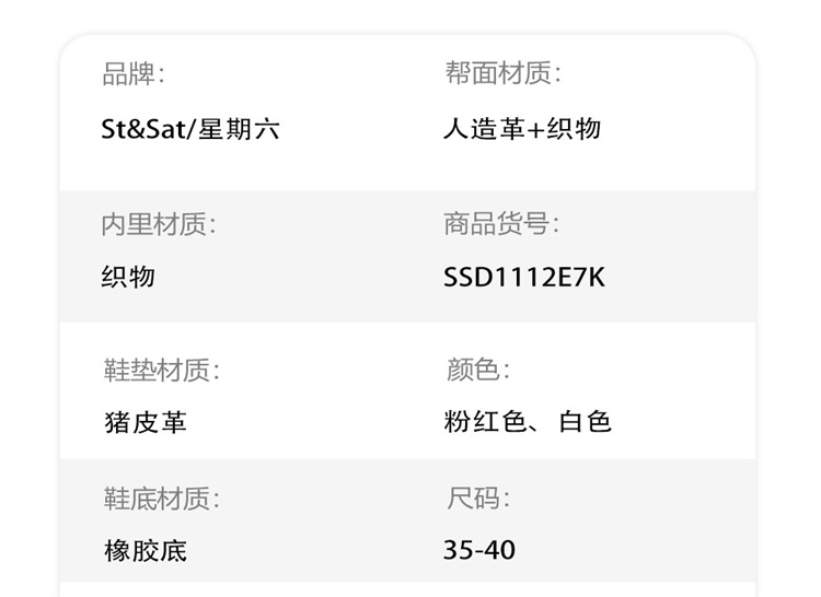 星期六粉色休闲透气软底芭蕾德训鞋SSD1112E7K