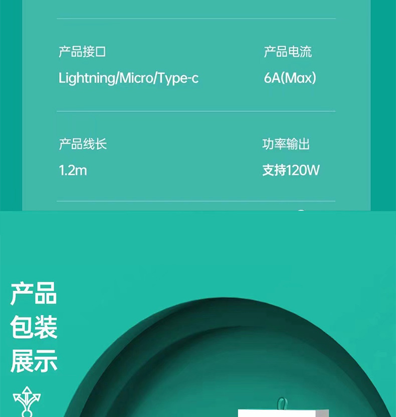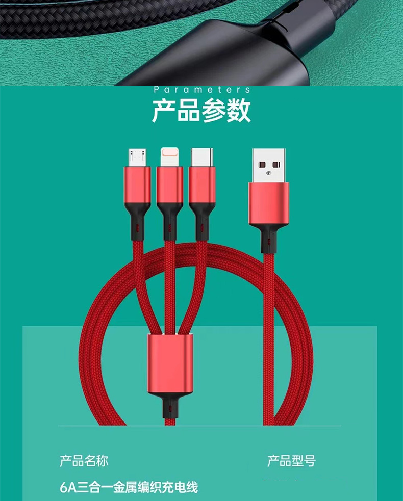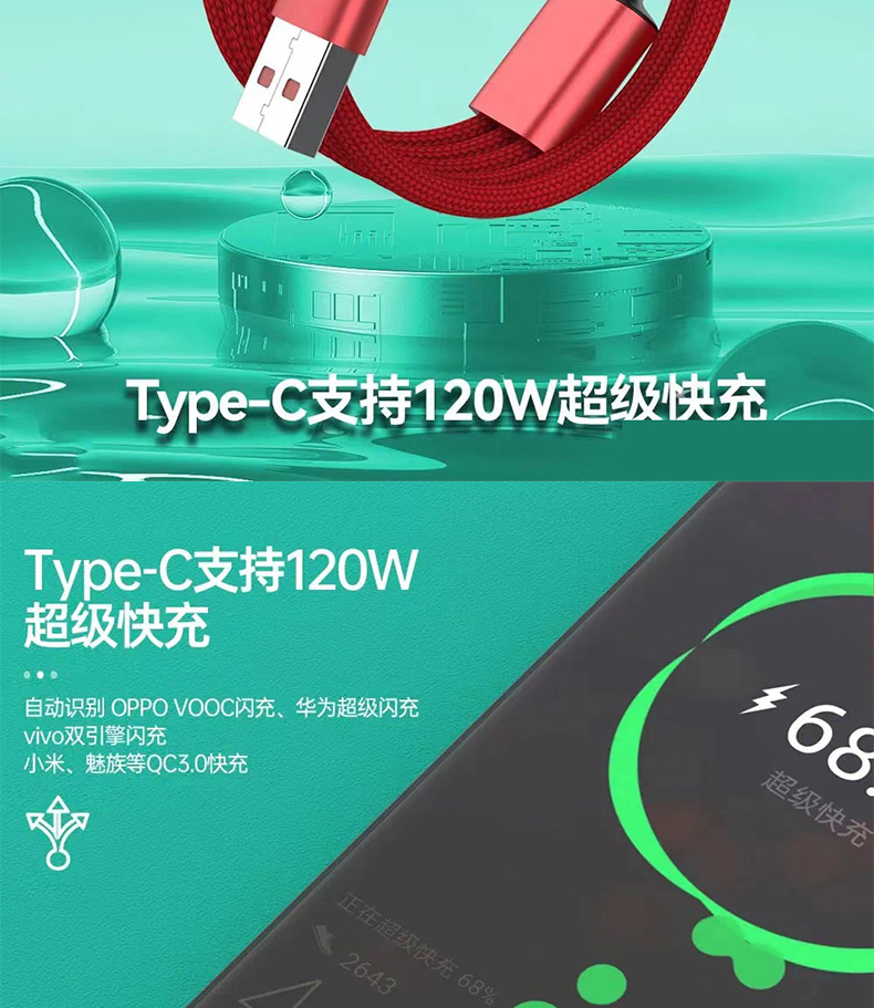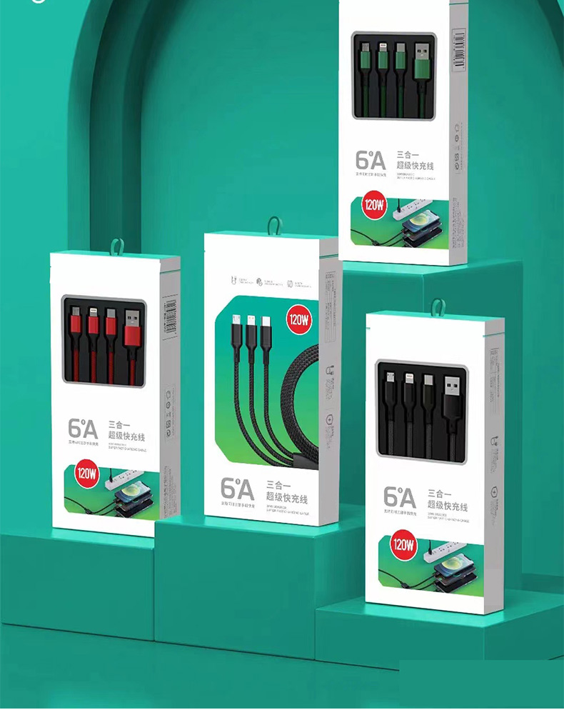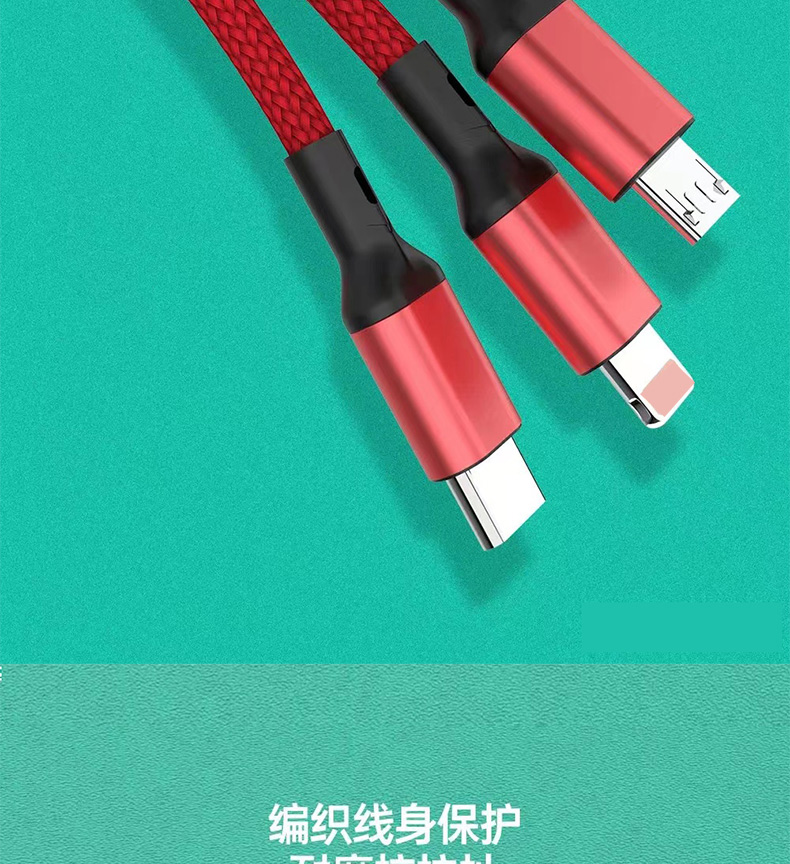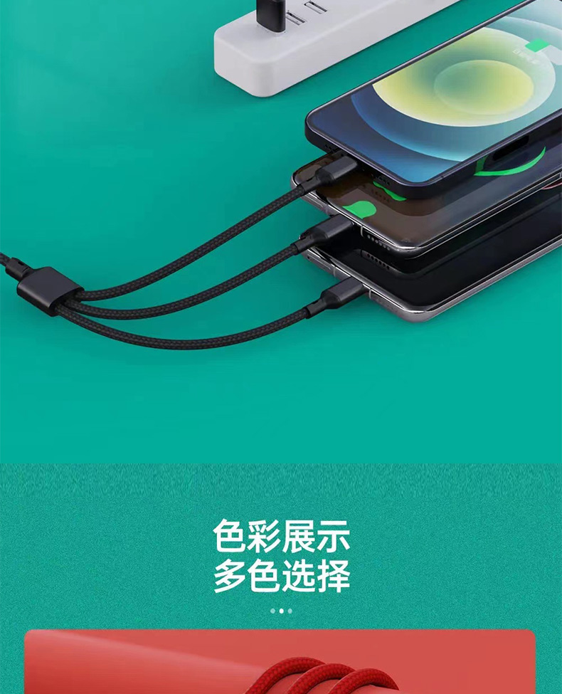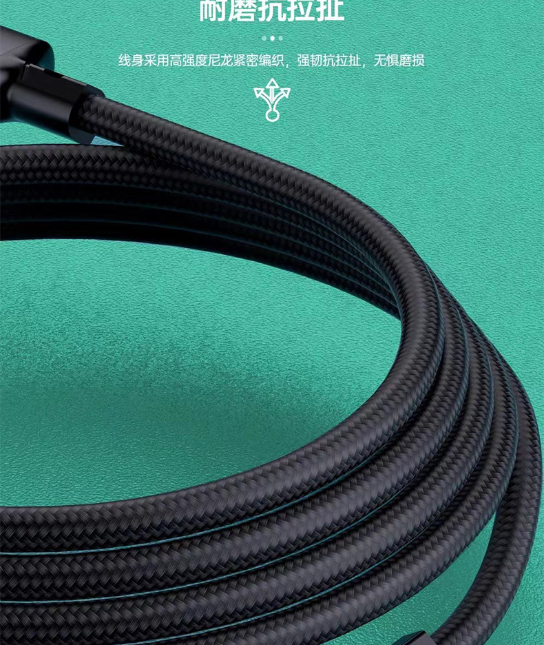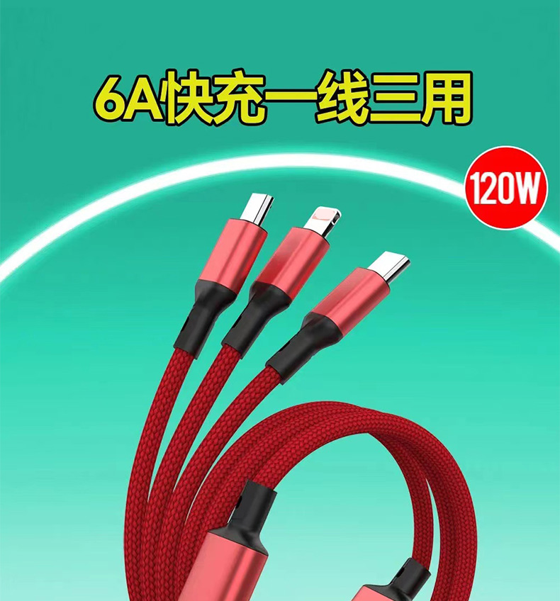 120w一拖三数据线一分三快充闪充多功能于高品质华为缝布编织