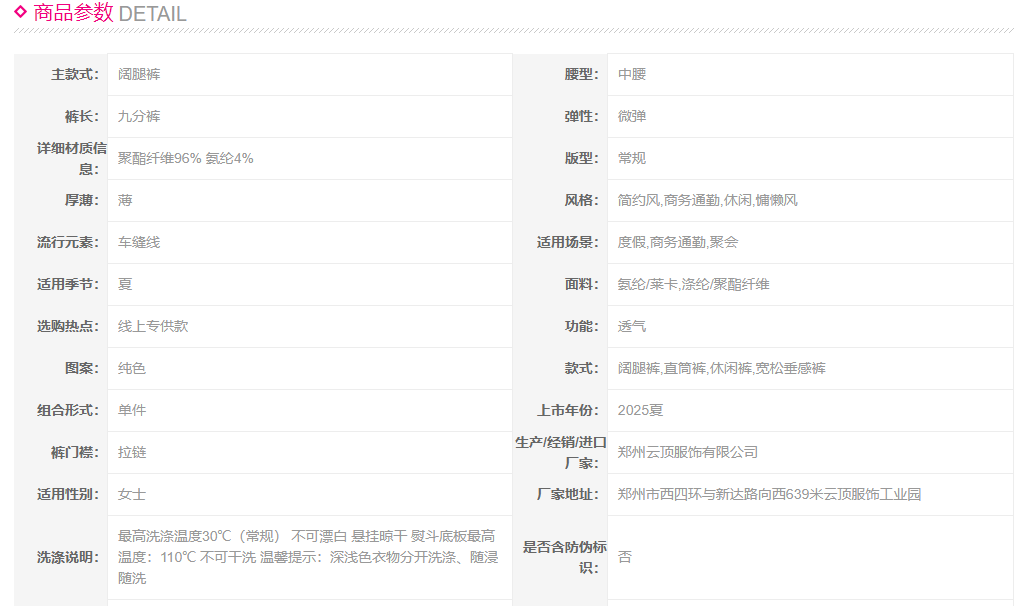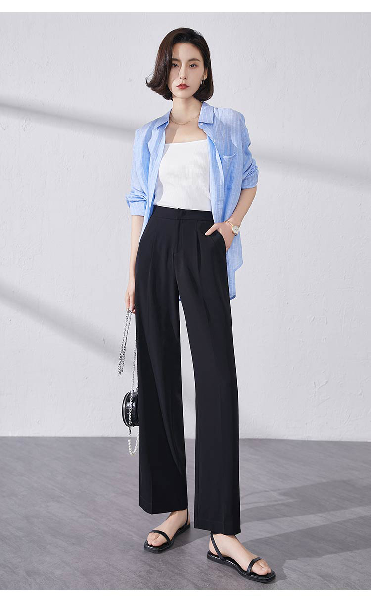 【夏日凉感神裤】逸阳夏新薄款高腰休闲小个子九分阔腿裤6371