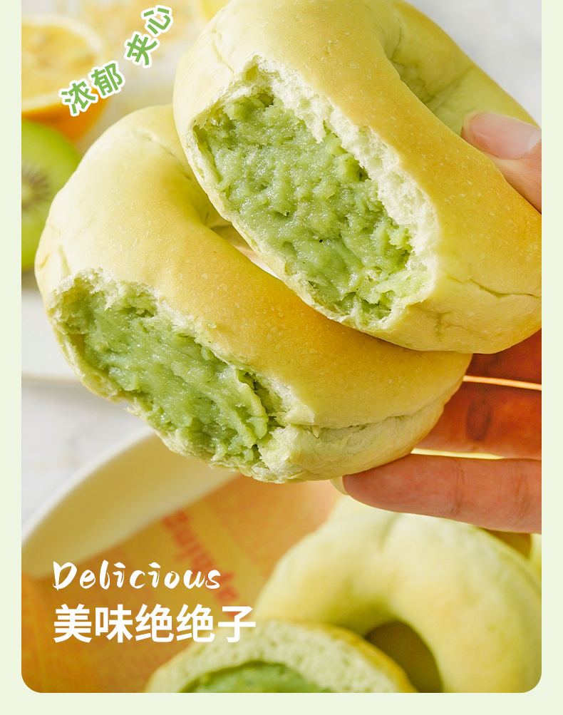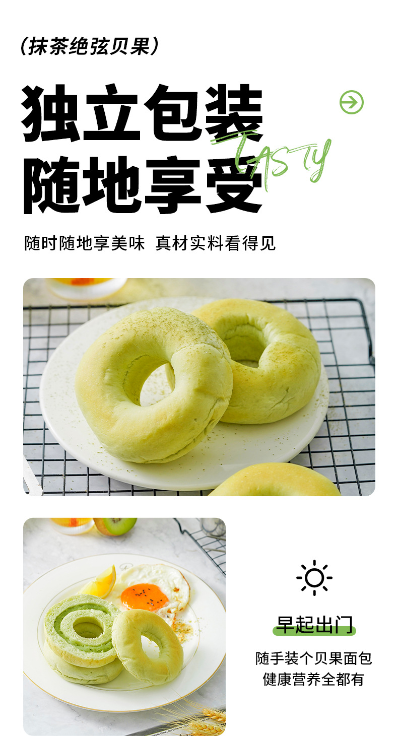 【无加蔗糖❗️抹茶绝弦夹心贝果面包】含有蛋白质,营养丰富,全麦饱腹无负担 一口香软一口美味!约75g/袋零食品早代餐解馋