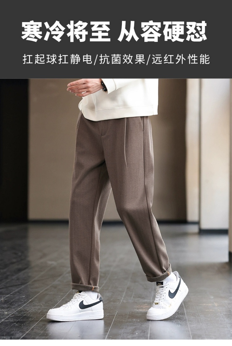 【远红外发热】圣得西2025秋季新款加绒加厚抗菌宽松直筒长裤男