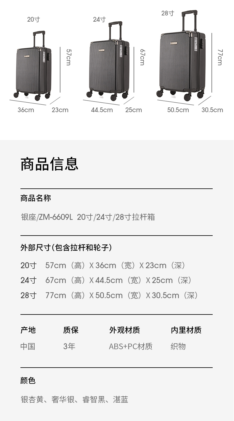 银座新款男女学生耐用大容量拉杆箱6609